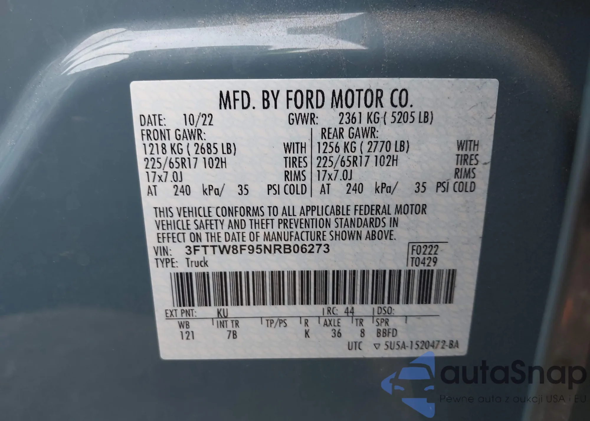 VIN: 3FTTW8F95NRB06273