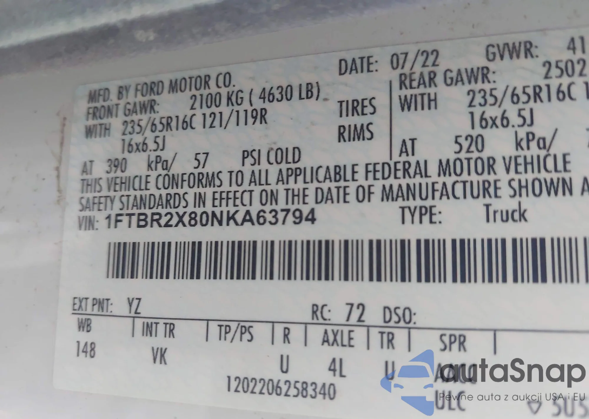 VIN: 1FTBR2X80NKA63794