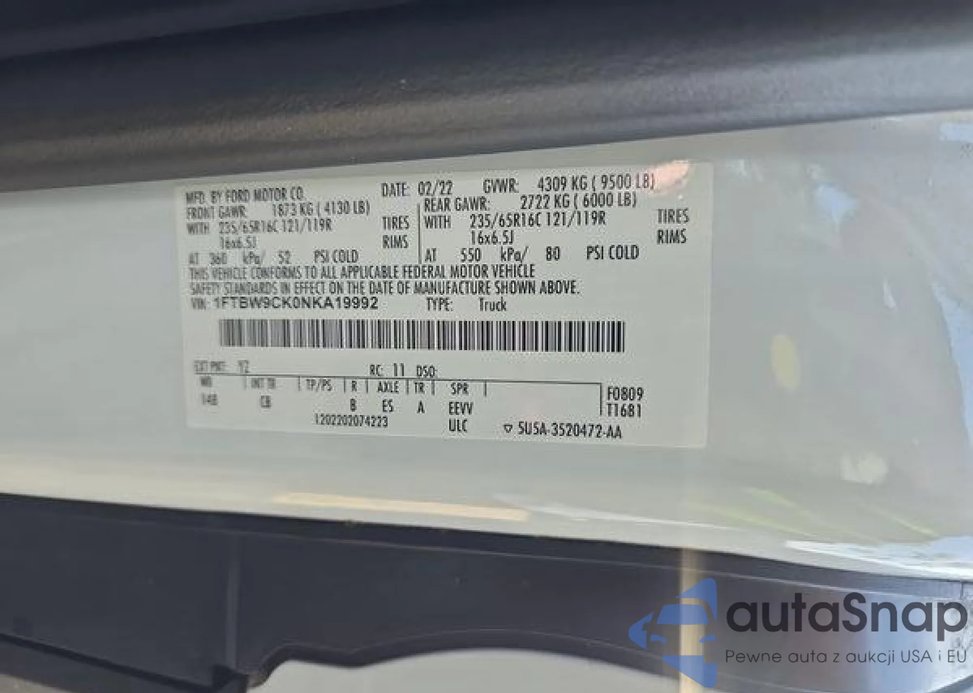 VIN: 1FTBW9CK0NKA19992