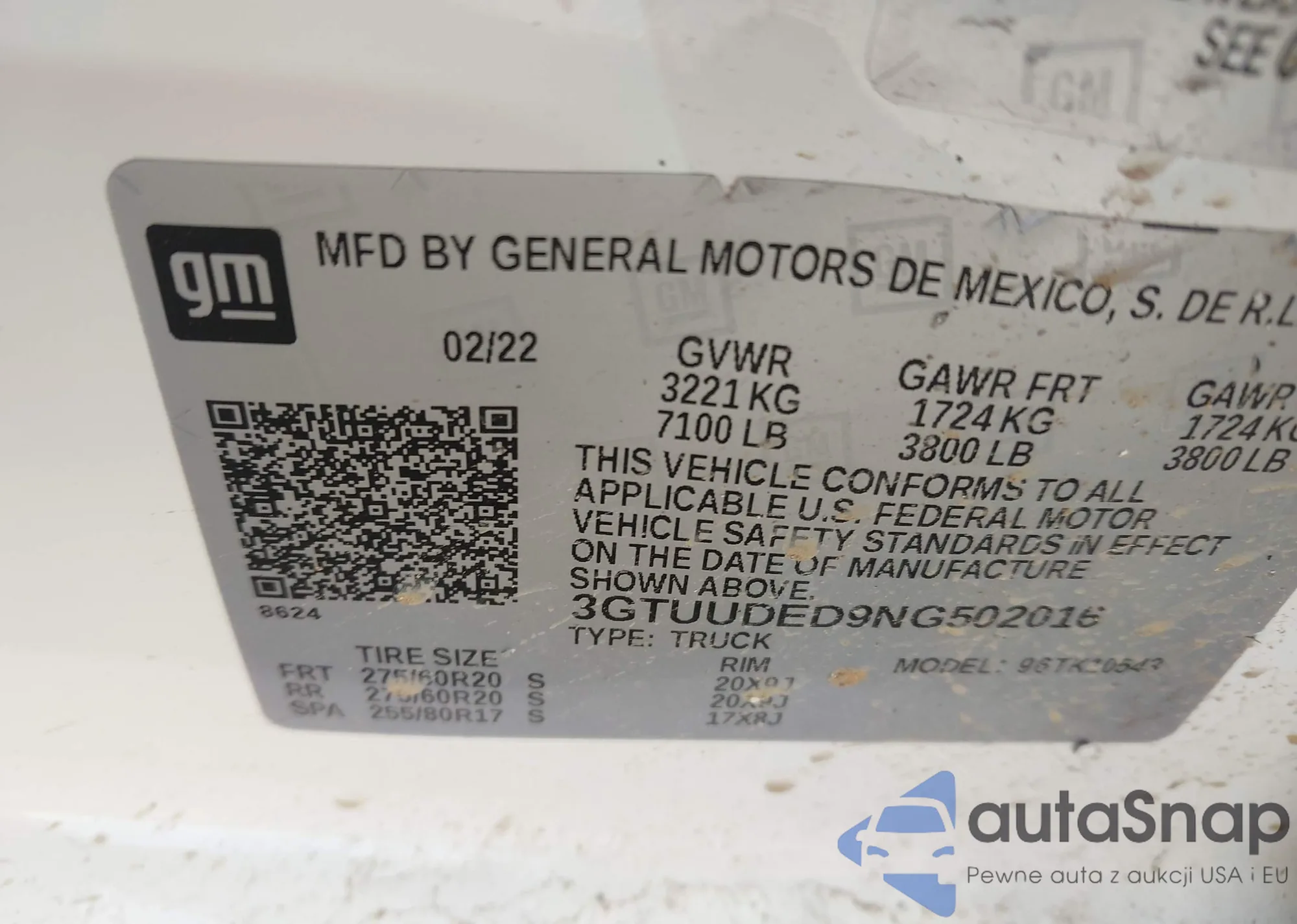 VIN: 3GTUUDED9NG502016