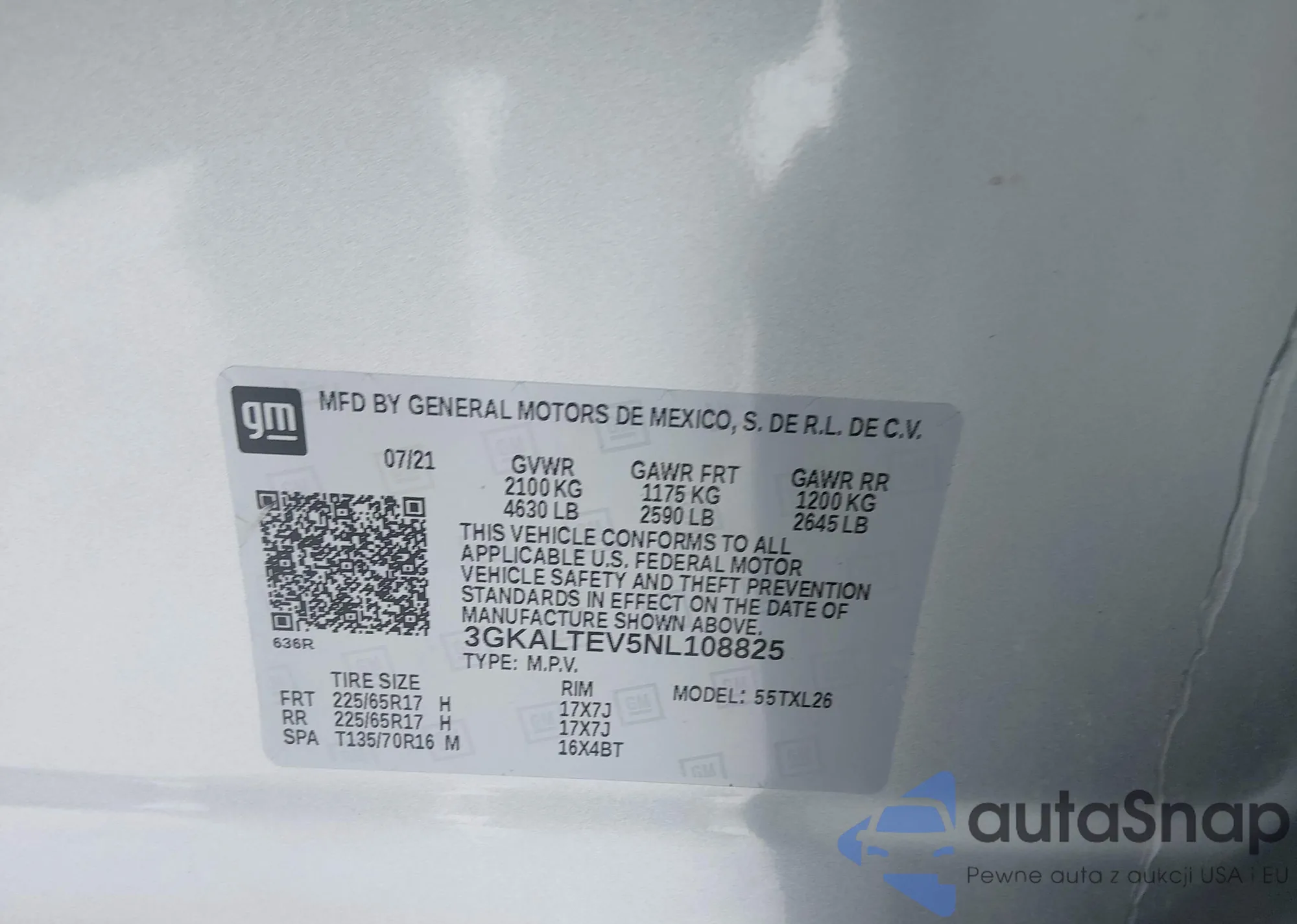 Samochód GMC Terrain 2022 (VIN 3GKALTEV5NL108825) nie był wcześniej licytowany. Dokumenty są czyste, przebieg odpowiada lub jest niższy niż średnia rynku. Sprzedaje go firma ubezpieczeniowa – polecamy zakup. Dostawa do portu zajmie ok. 6–8 tygodni.