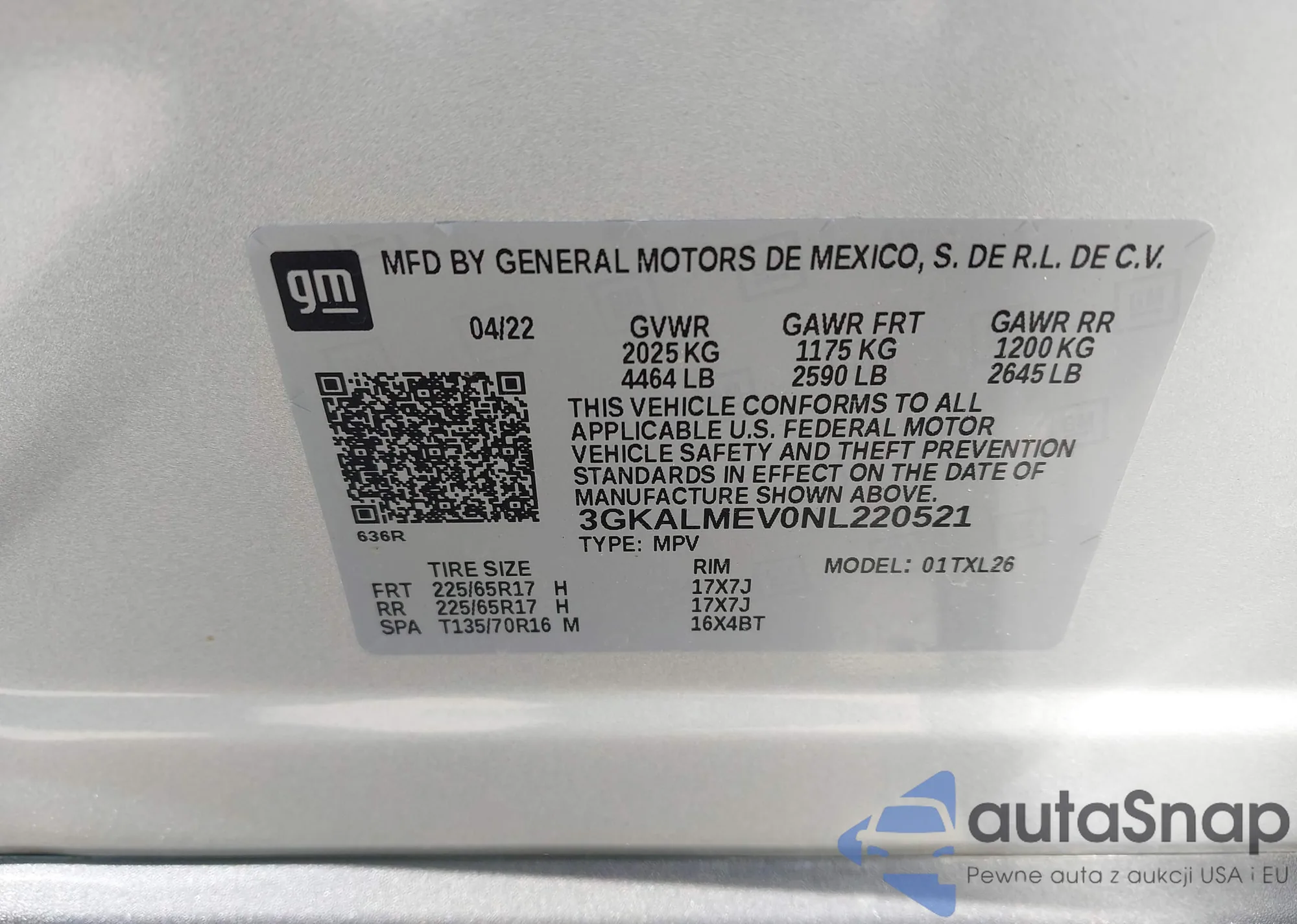VIN: 3GKALMEV0NL220521