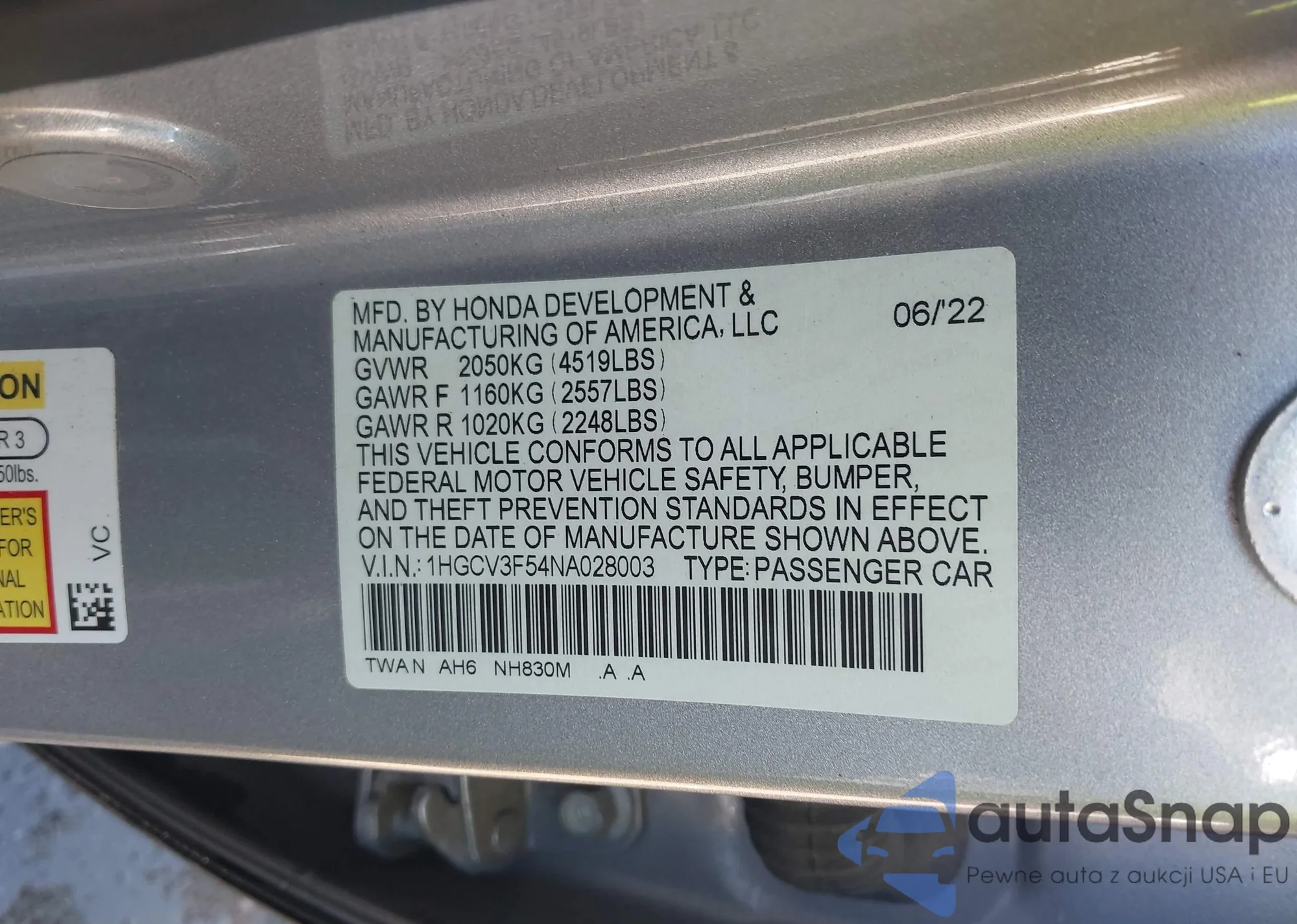 VIN: 1HGCV3F54NA028003