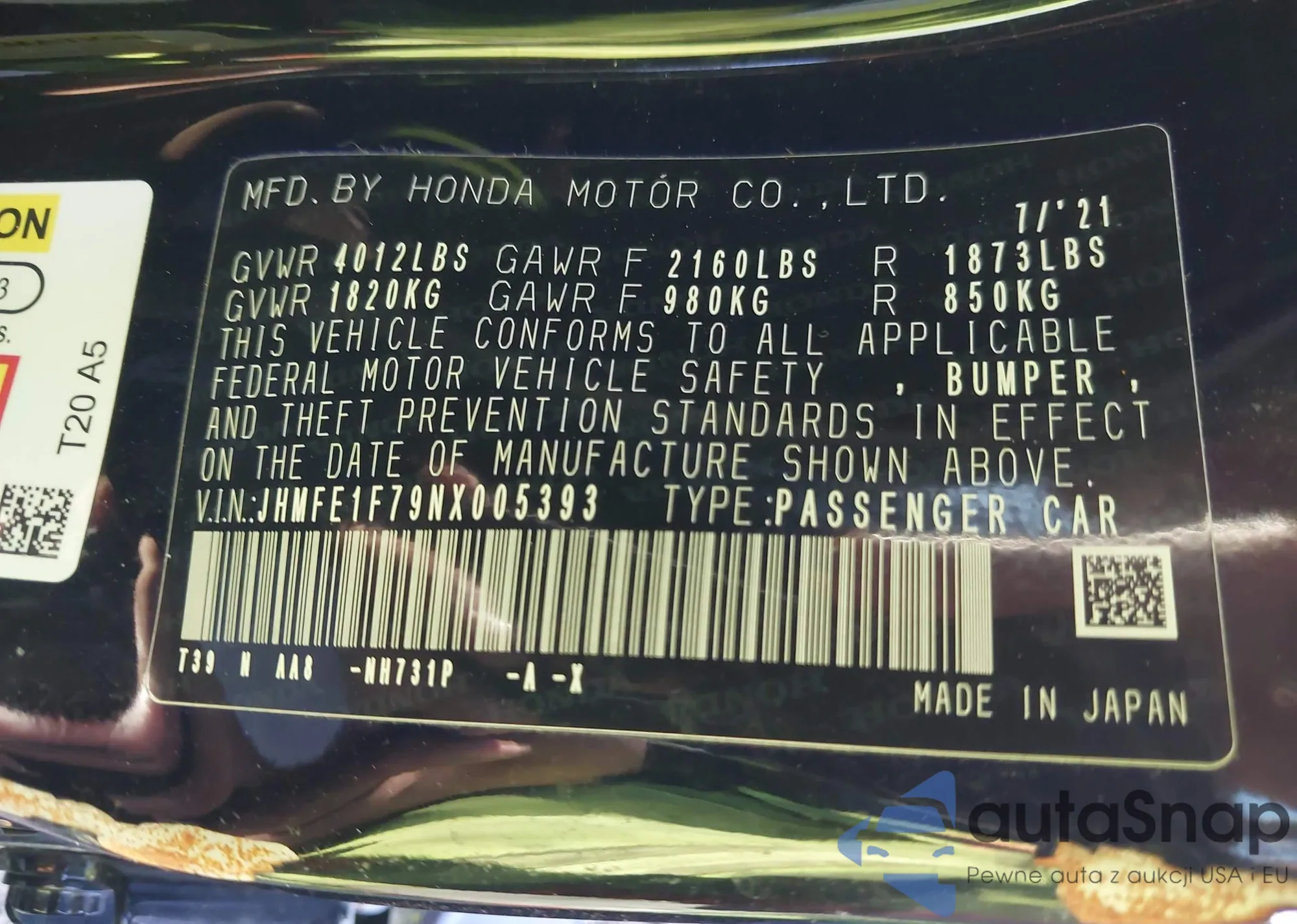 VIN: JHMFE1F79NX005393