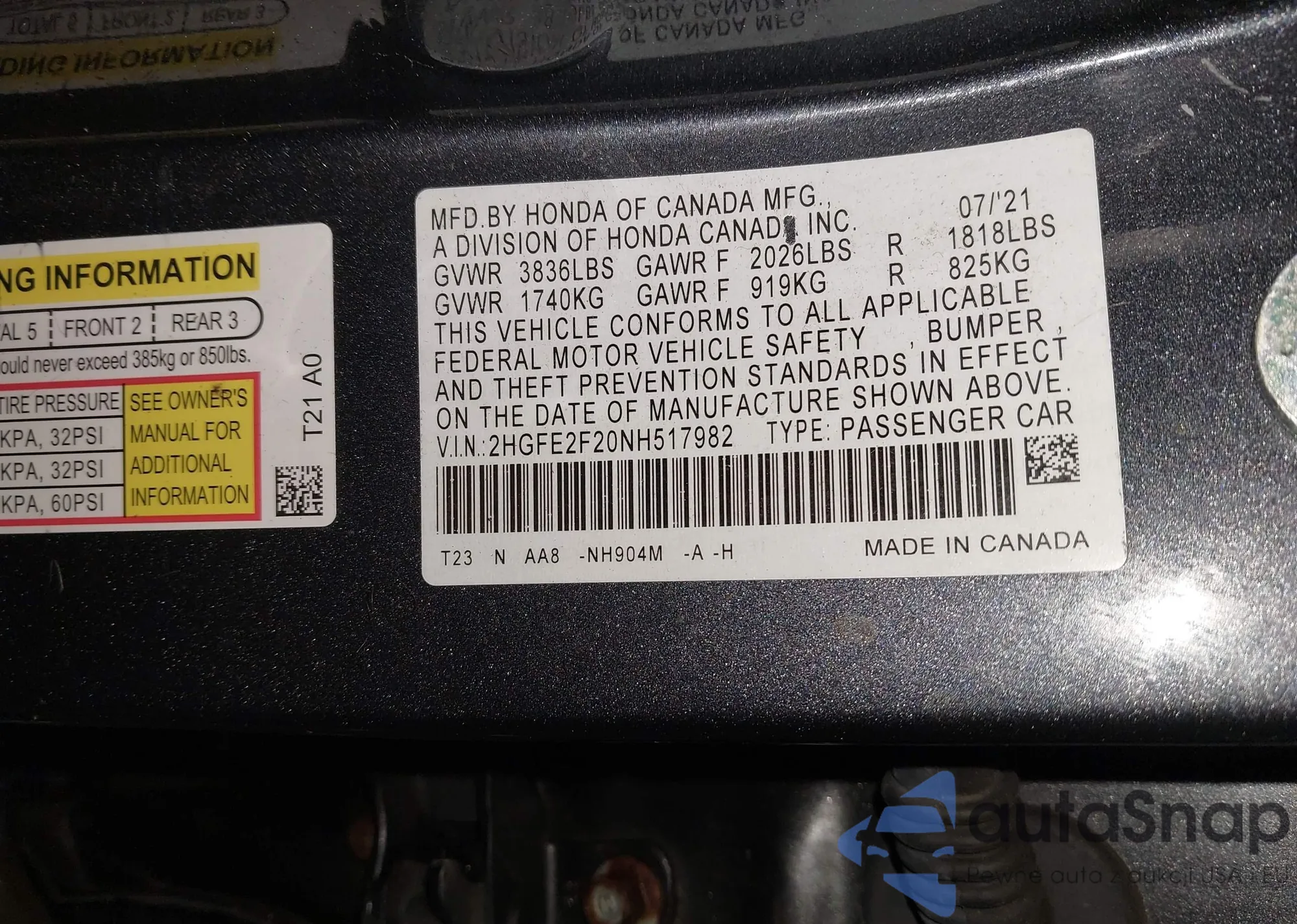 VIN: 2HGFE2F20NH517982