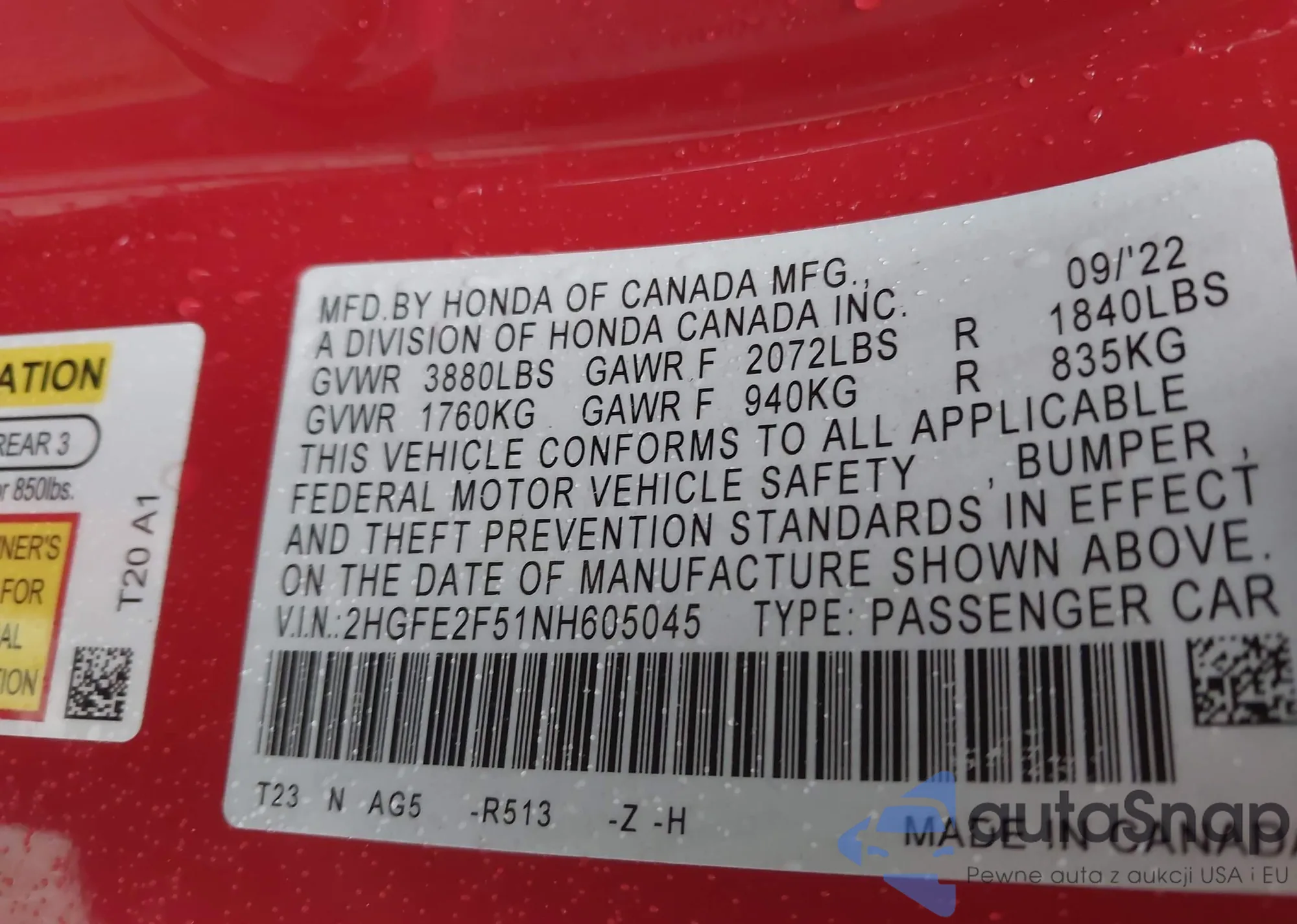 VIN: 2HGFE2F51NH605045