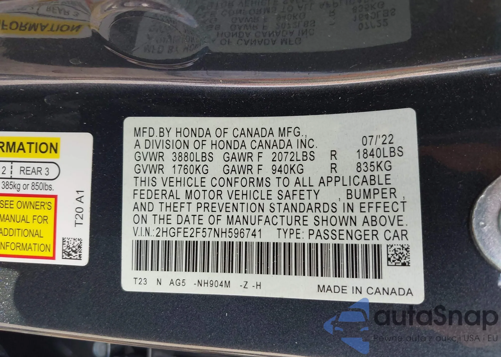 VIN: 2HGFE2F57NH596741