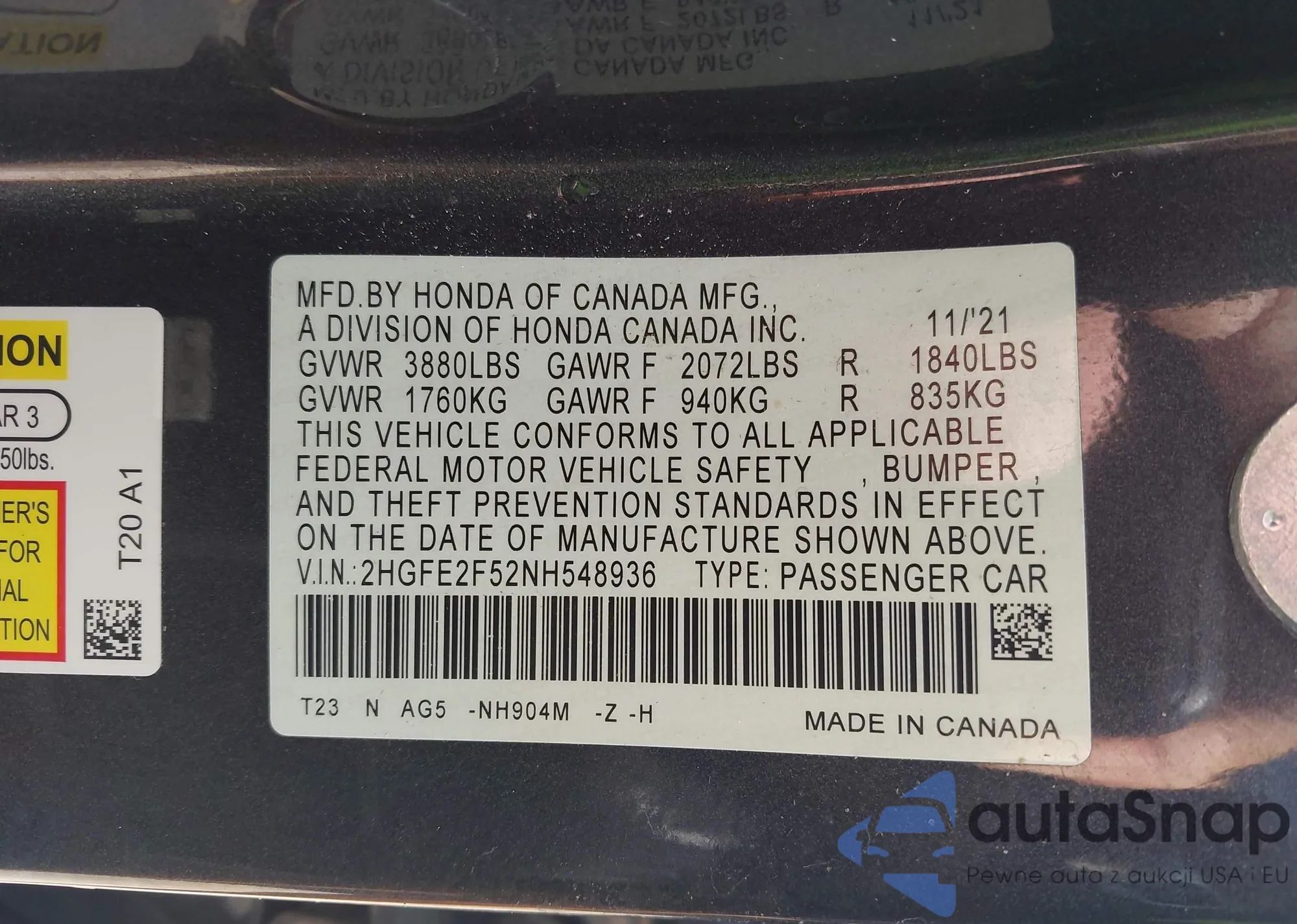 VIN: 2HGFE2F52NH548936