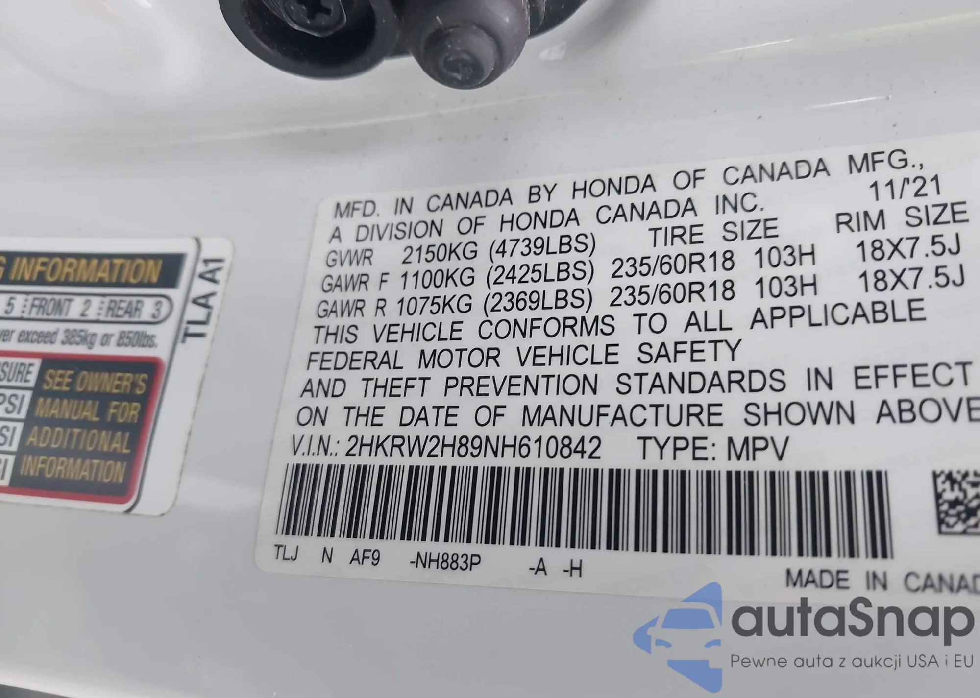VIN: 2HKRW2H89NH610842