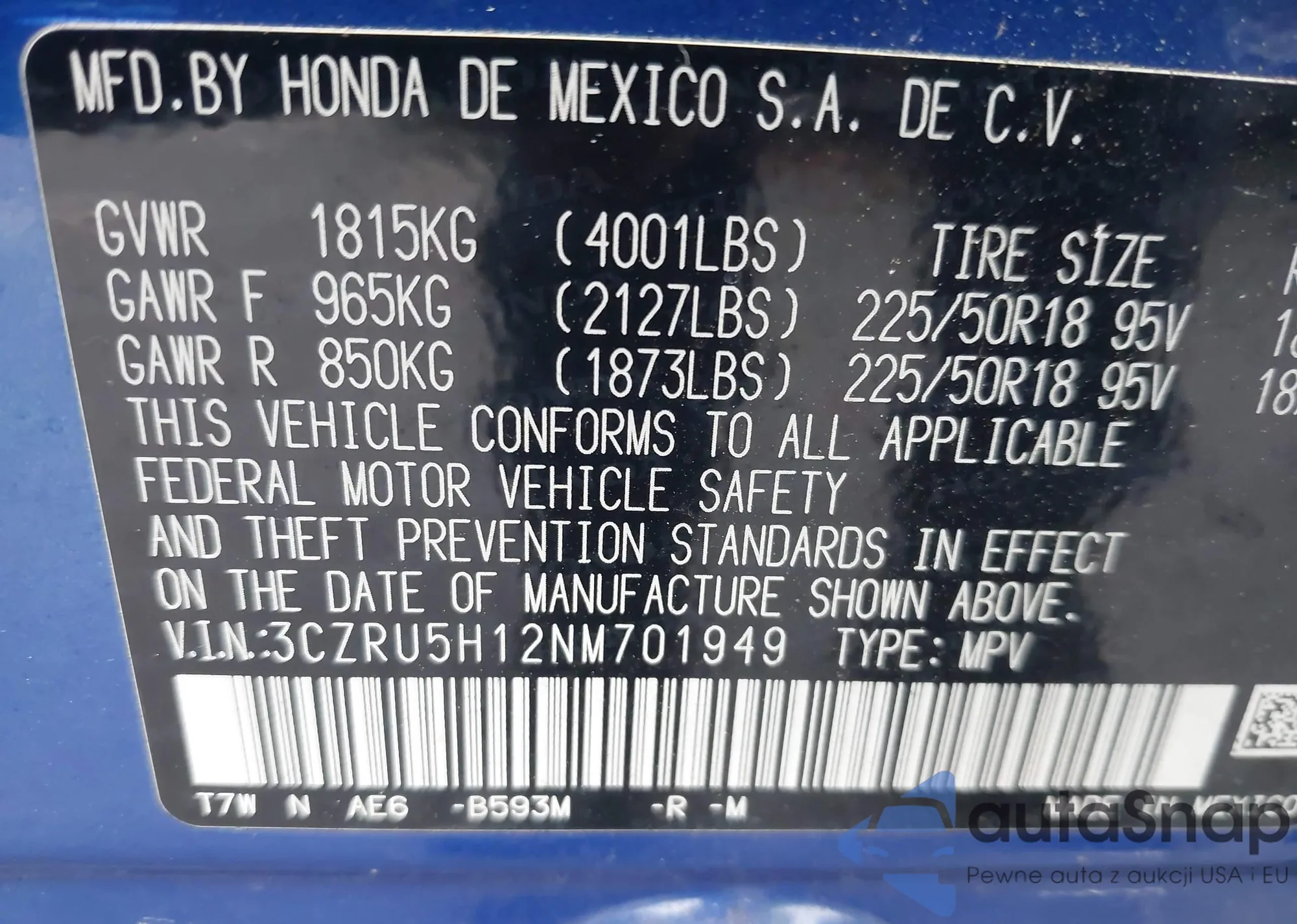 • VIN: 3CZRU5H12NM701949