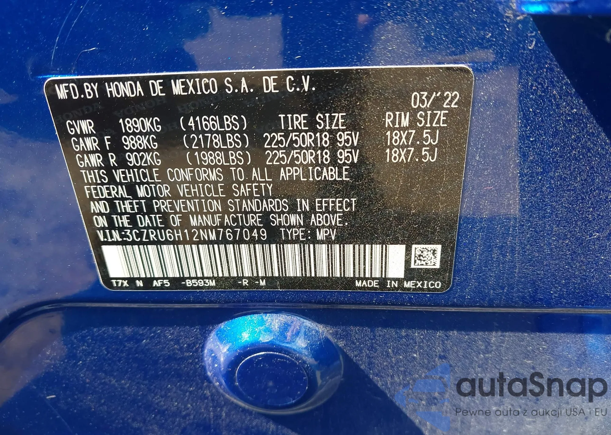 VIN: 3CZRU6H12NM767049