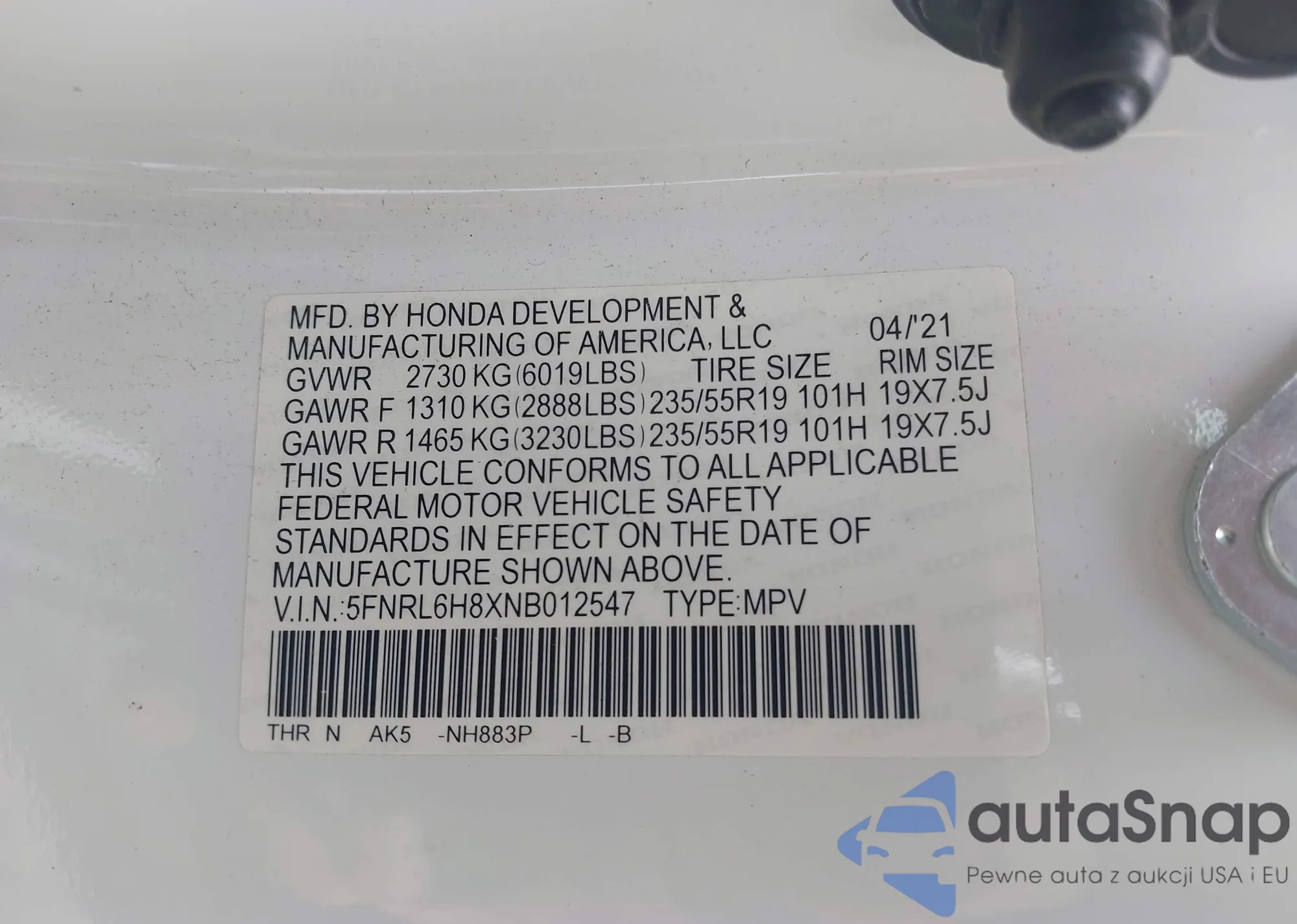Samochód Honda Odyssey 2022 (VIN 5FNRL6H8XNB012547) nie był wcześniej licytowany. Dokumenty są czyste, przebieg odpowiada lub jest niższy niż średnia rynku. Sprzedaje go firma ubezpieczeniowa – polecamy zakup. Dostawa do portu zajmie ok. 6–8 tygodni.