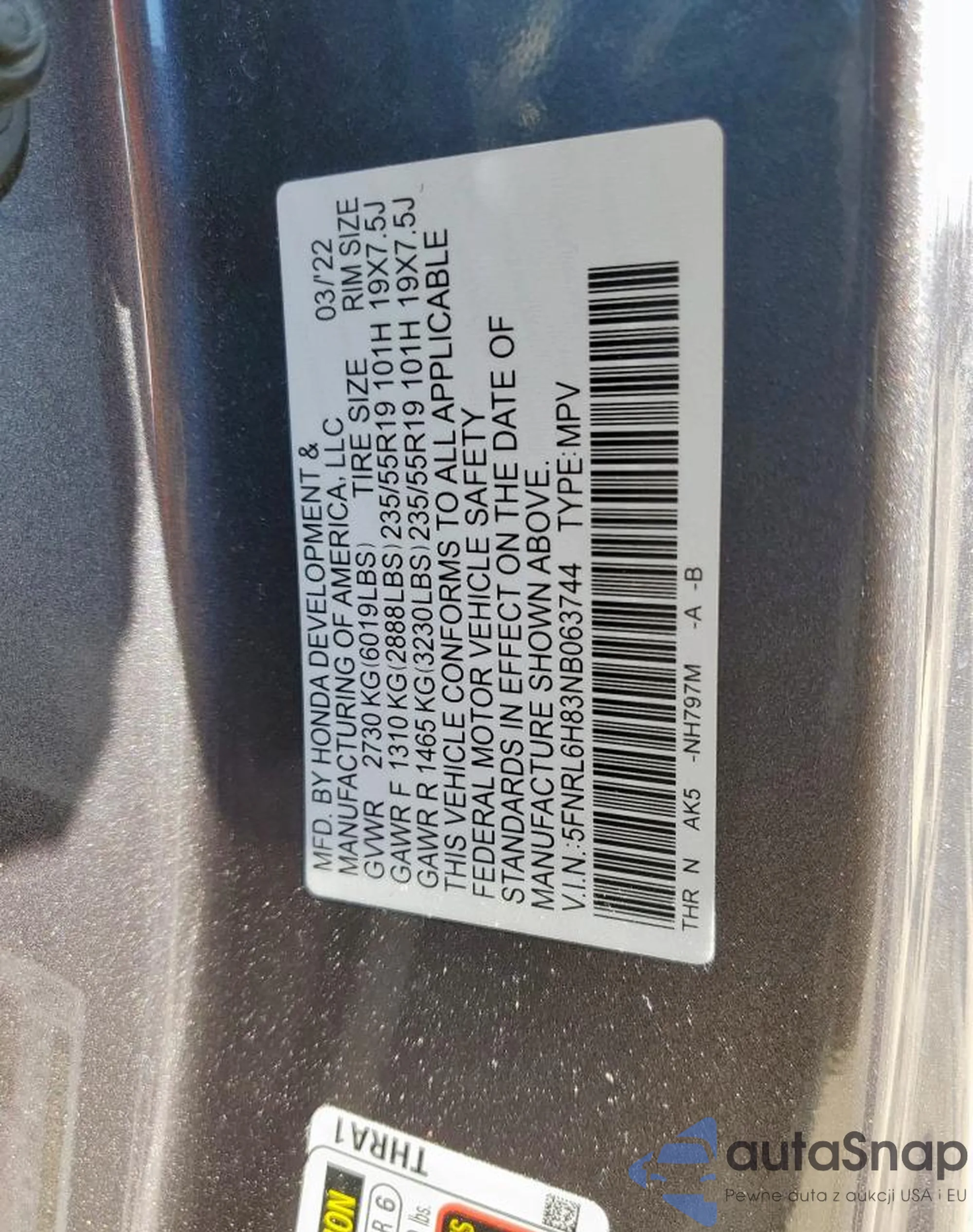 VIN: 5FNRL6H83NB063744