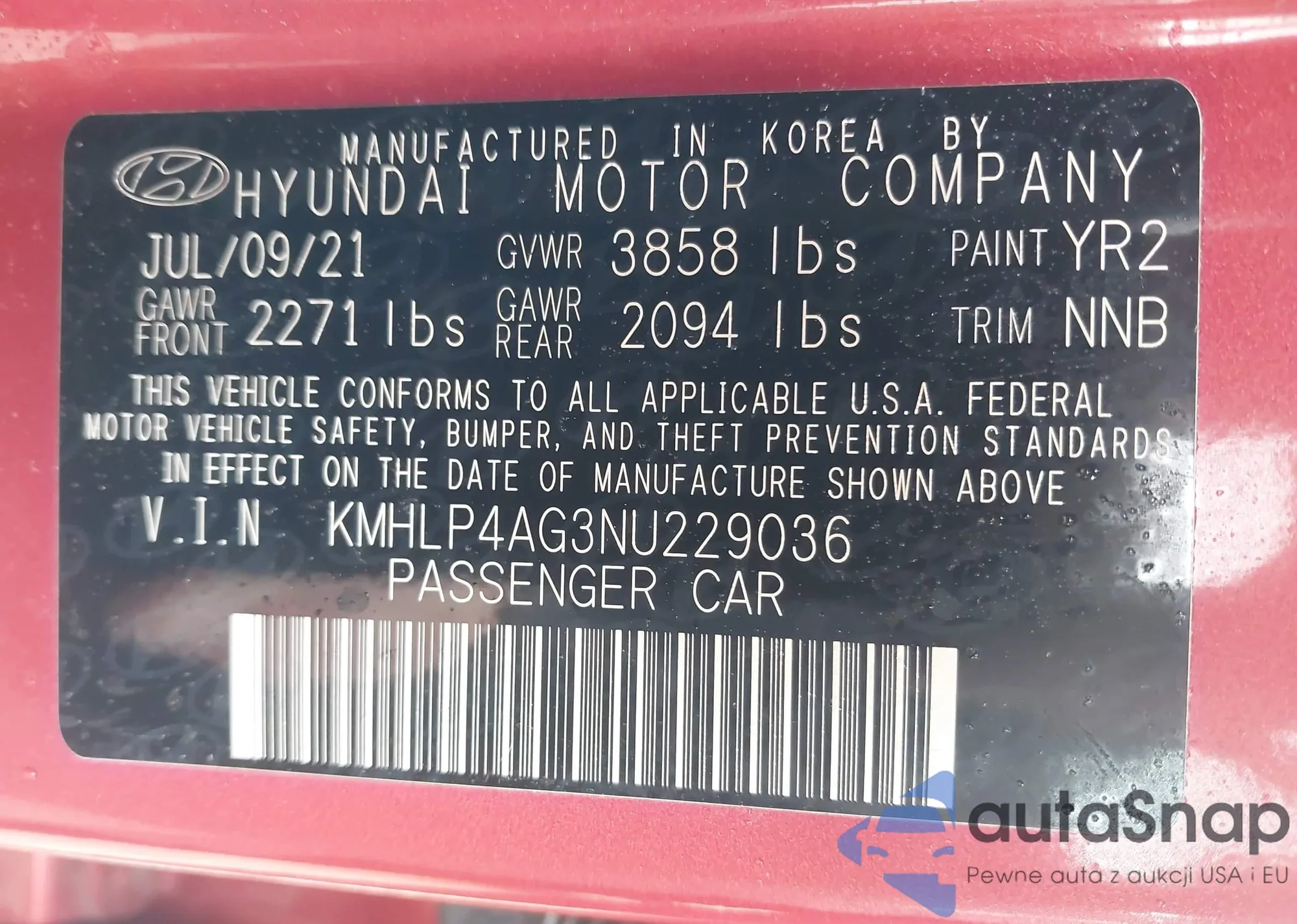 VIN: KMHLP4AG3NU229036
