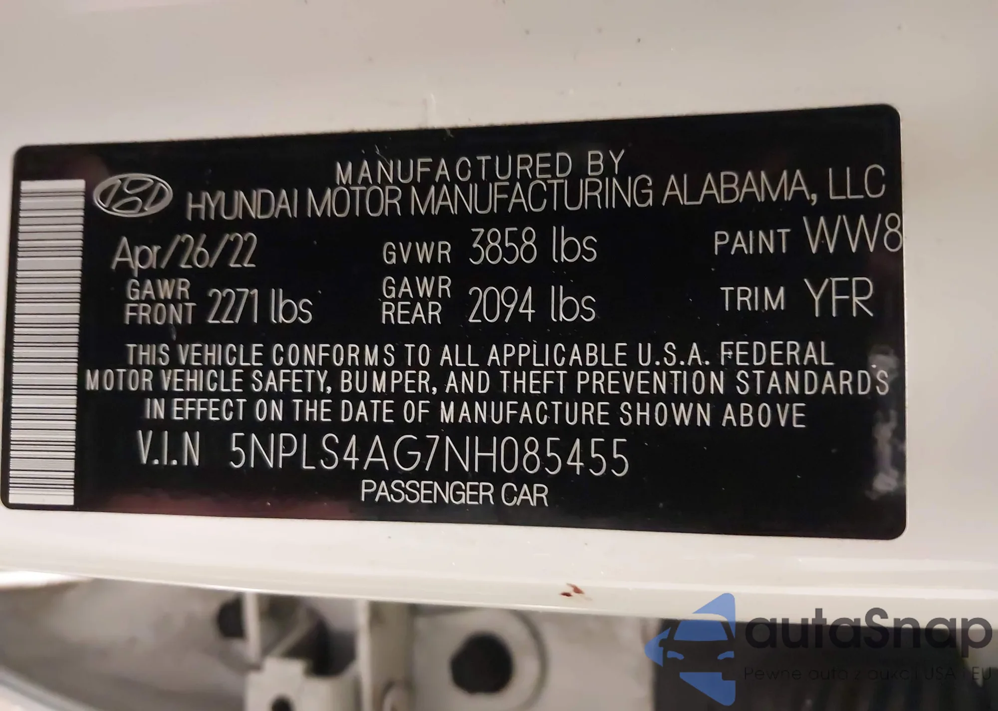VIN: 5NPLS4AG7NH085455