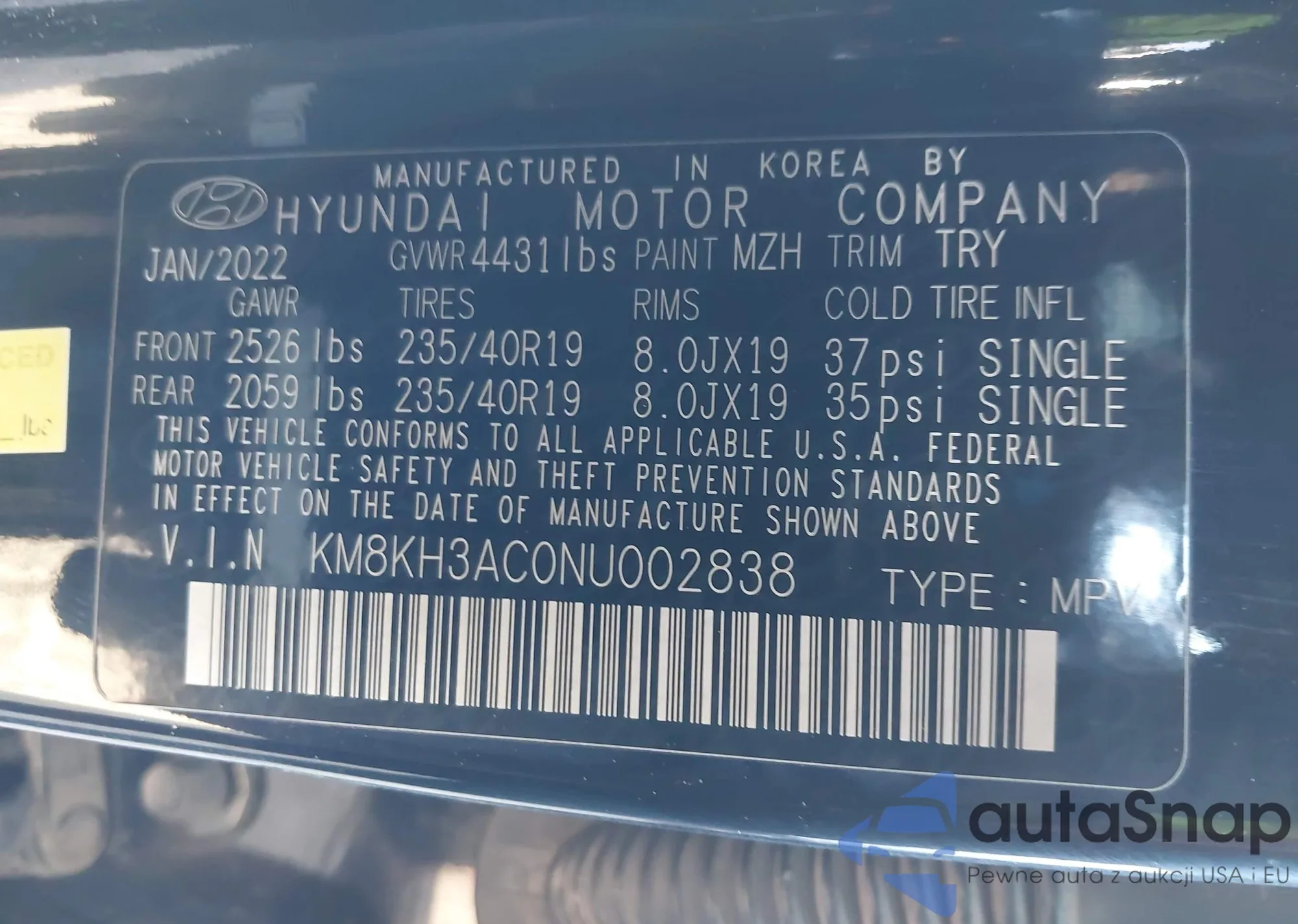 • VIN: KM8KH3AC0NU002838