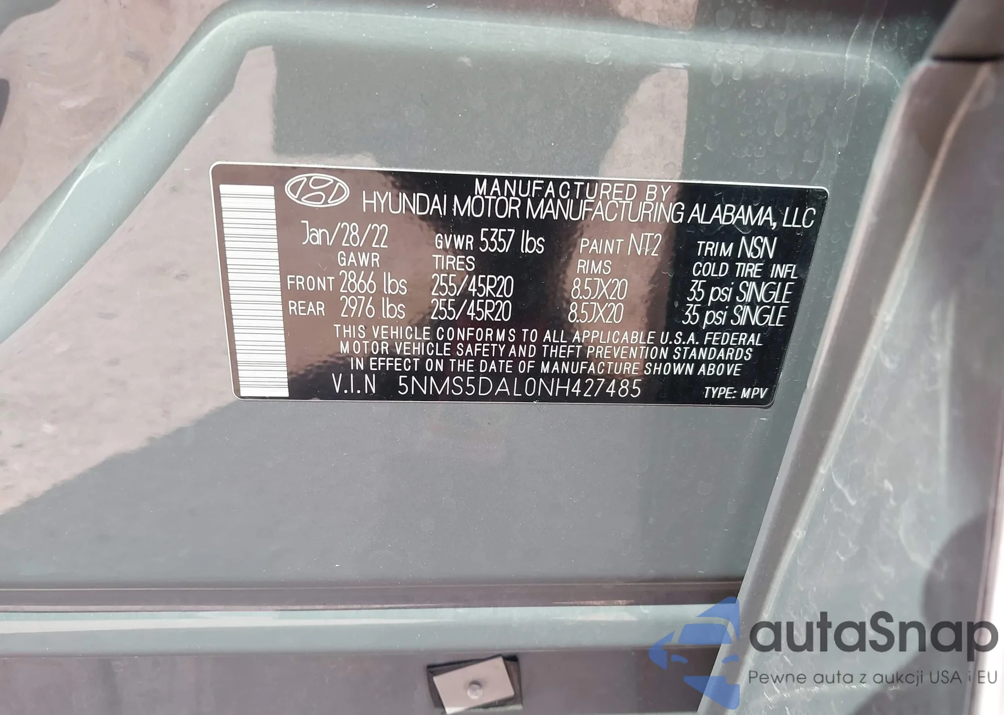 VIN: 5NMS5DAL0NH427485