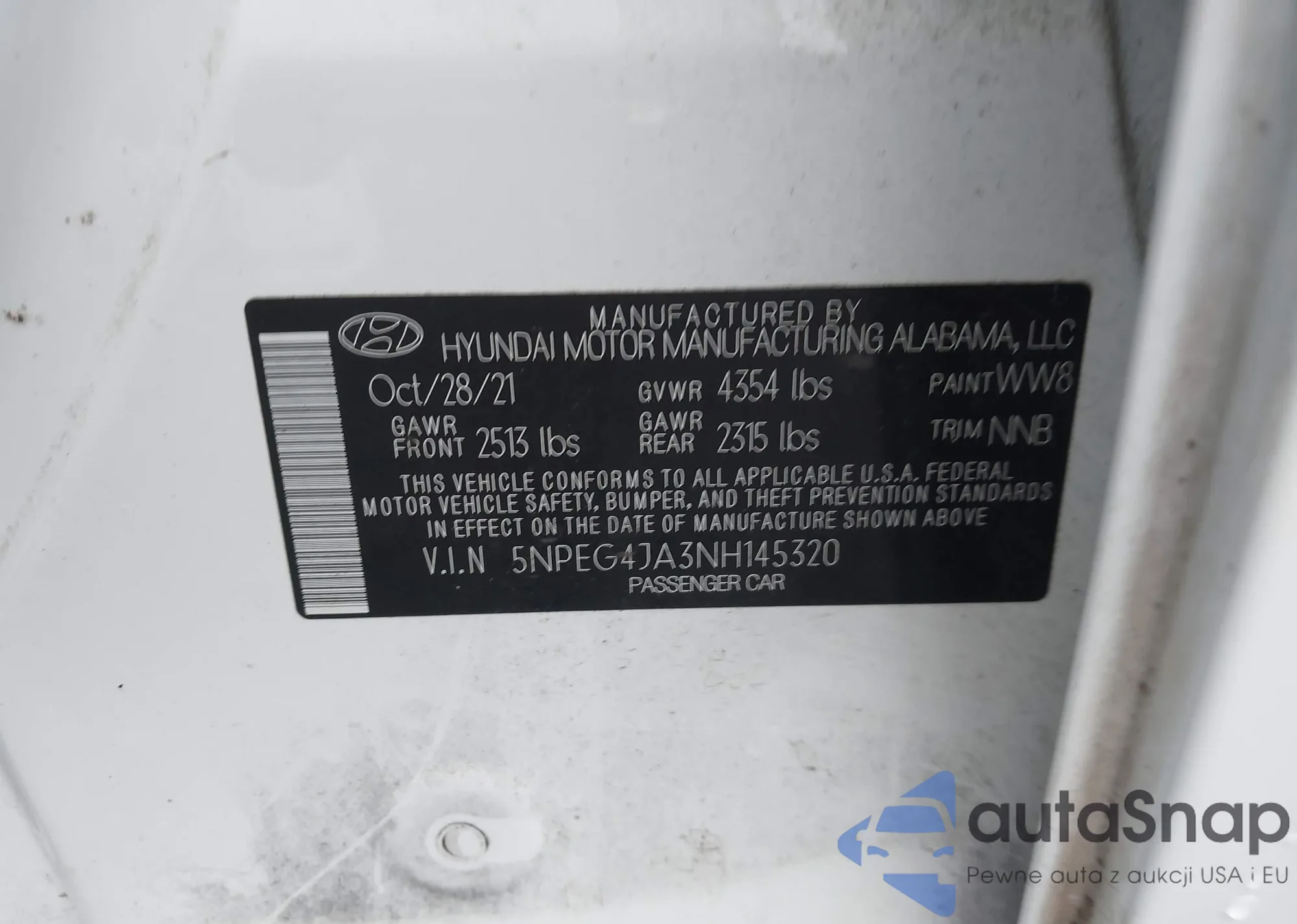 VIN: 5NPEG4JA3NH145320