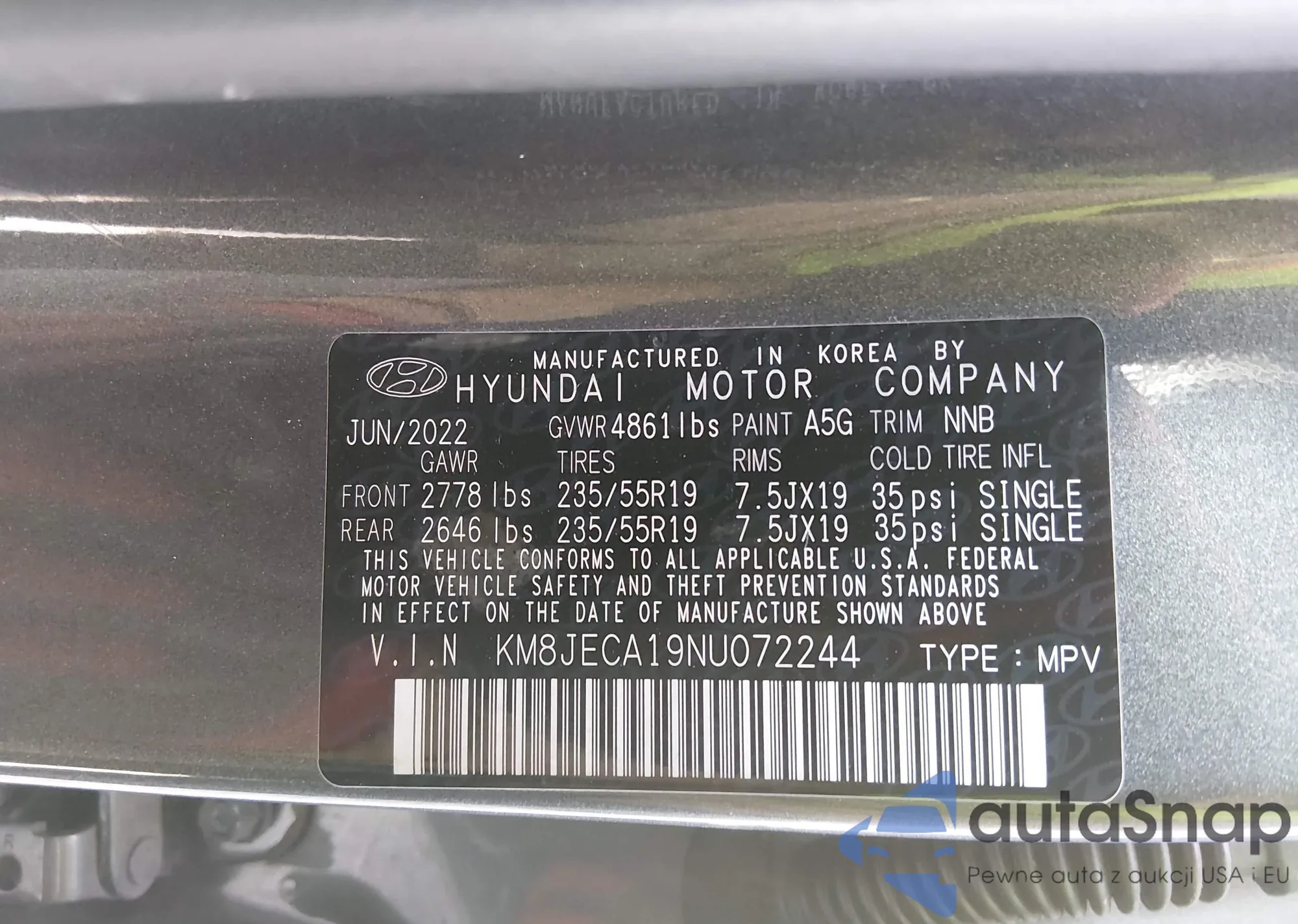 • VIN: KM8JECA19NU072244