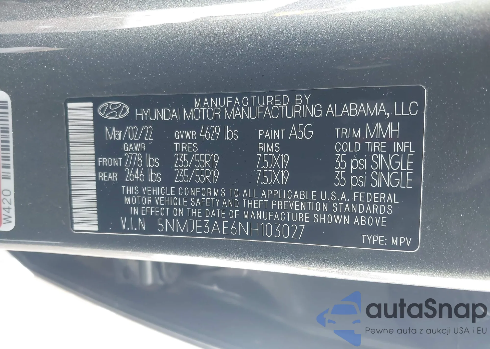 • VIN: 5NMJE3AE6NH103027