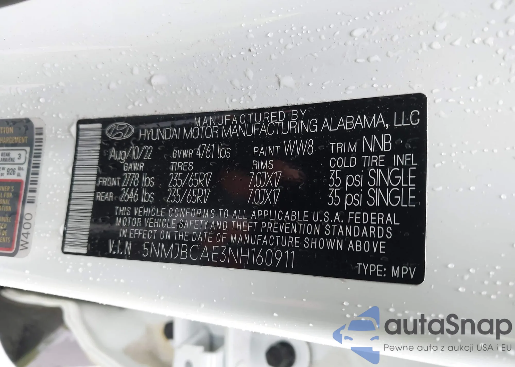 VIN: 5NMJBCAE3NH160911