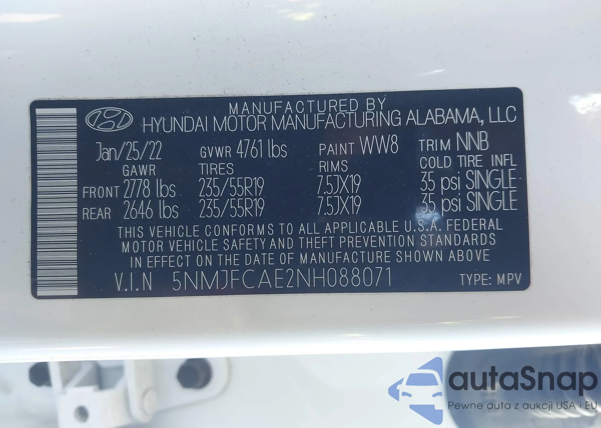 VIN: 5NMJFCAE2NH088071