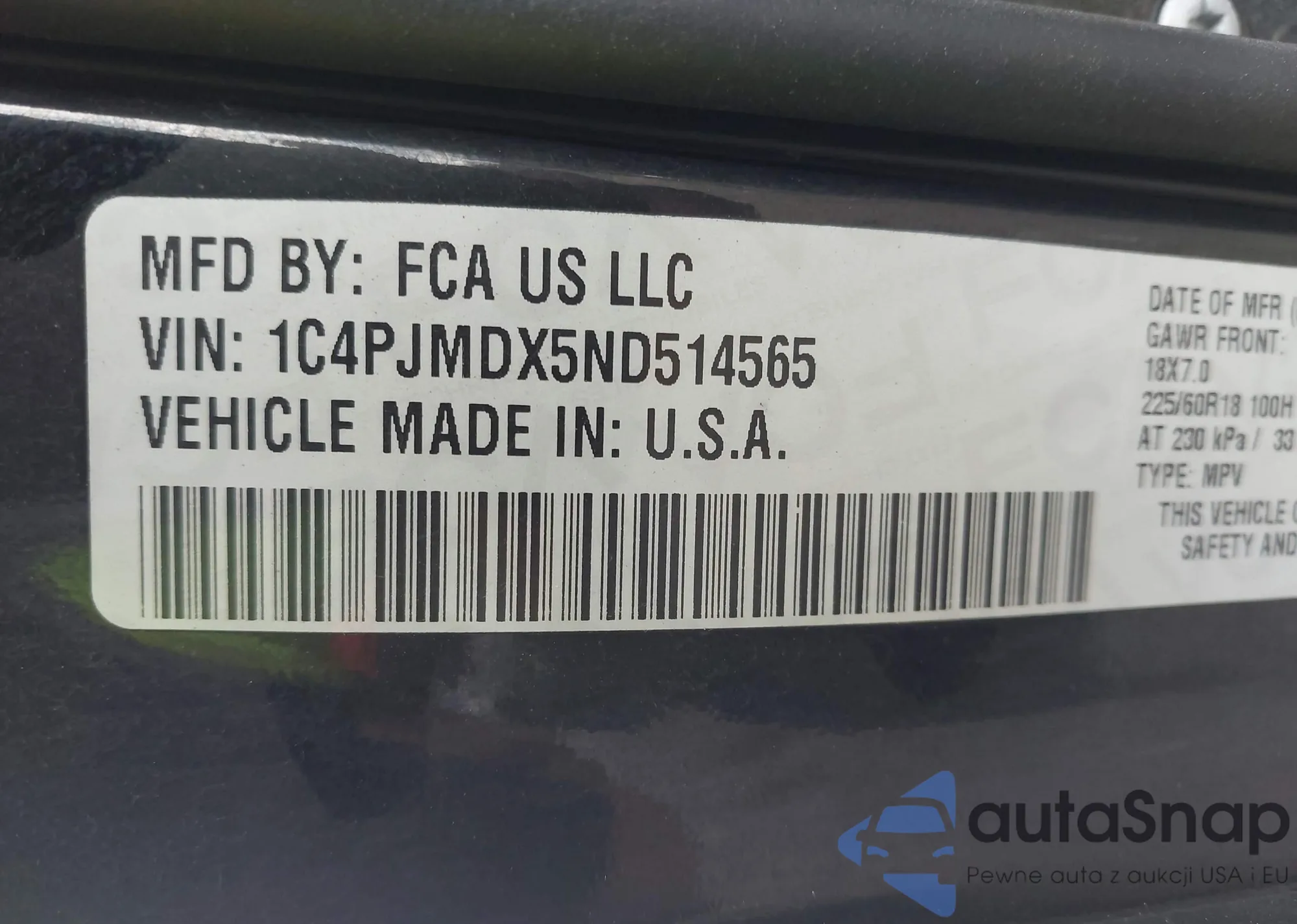 VIN: 1C4PJMDX5ND514565