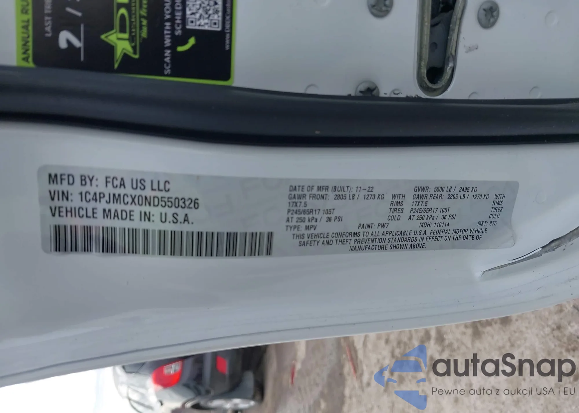 Samochód Jeep Cherokee 2022 (VIN 1C4PJMCX0ND550326) nie był wcześniej licytowany. Dokumenty są czyste, przebieg odpowiada lub jest niższy niż średnia rynku. Sprzedaje go firma ubezpieczeniowa – polecamy zakup. Dostawa do portu zajmie ok. 6–8 tygodni.