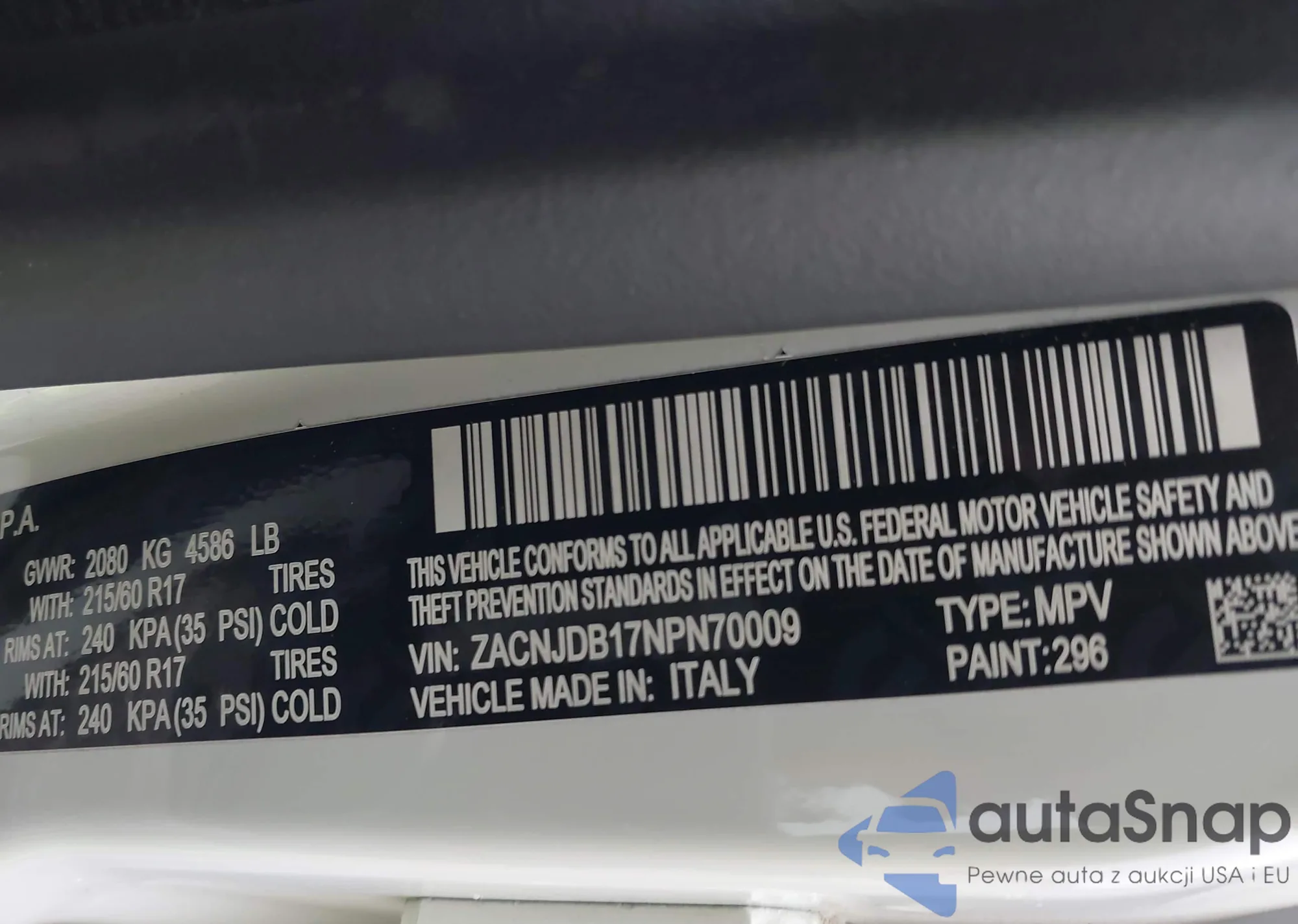 VIN: ZACNJDB17NPN70009
