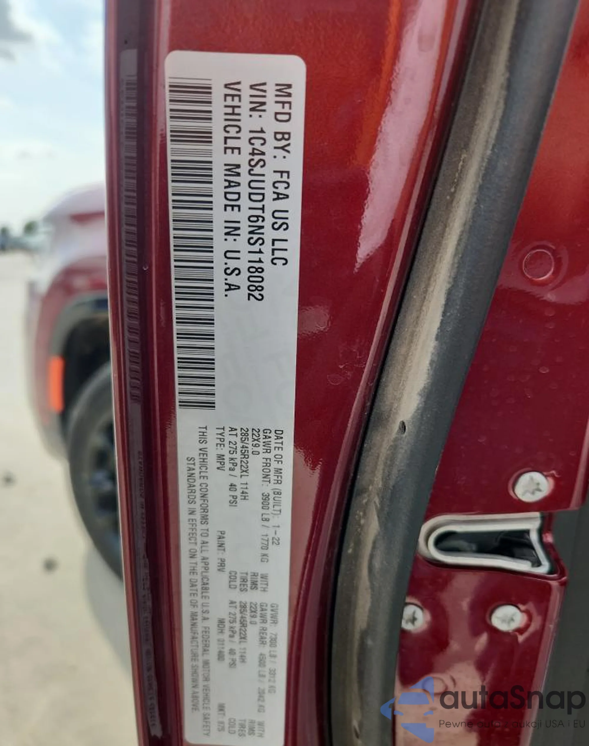 Samochód Jeep Grand Wagoneer 2022 (VIN 1C4SJUDT6NS118082) był już licytowany 1 razy i/lub sprzedaje go niezweryfikowany sprzedawca. Zalecamy raport Carfax i potwierdzenie możliwości rejestracji pojazdu przed zakupem.