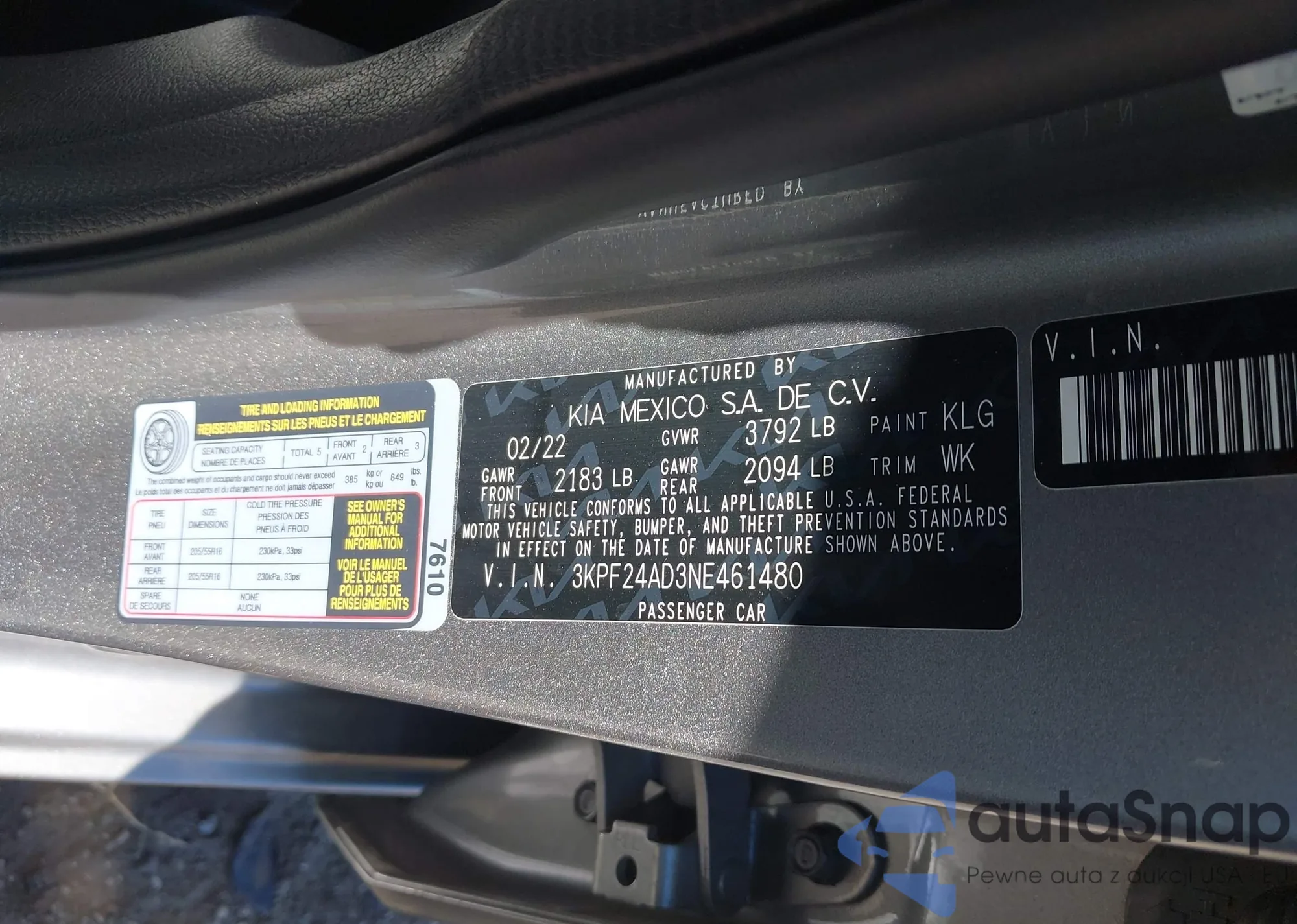 Samochód Kia Forte 2022 (VIN 3KPF24AD3NE461480) ma dokumenty uniemożliwiające rejestrację. Mogą pojawić się trudności przy eksporcie i rejestracji. Skontaktuj się z ekspertami AutaSnap w celu znalezienia alternatywy.