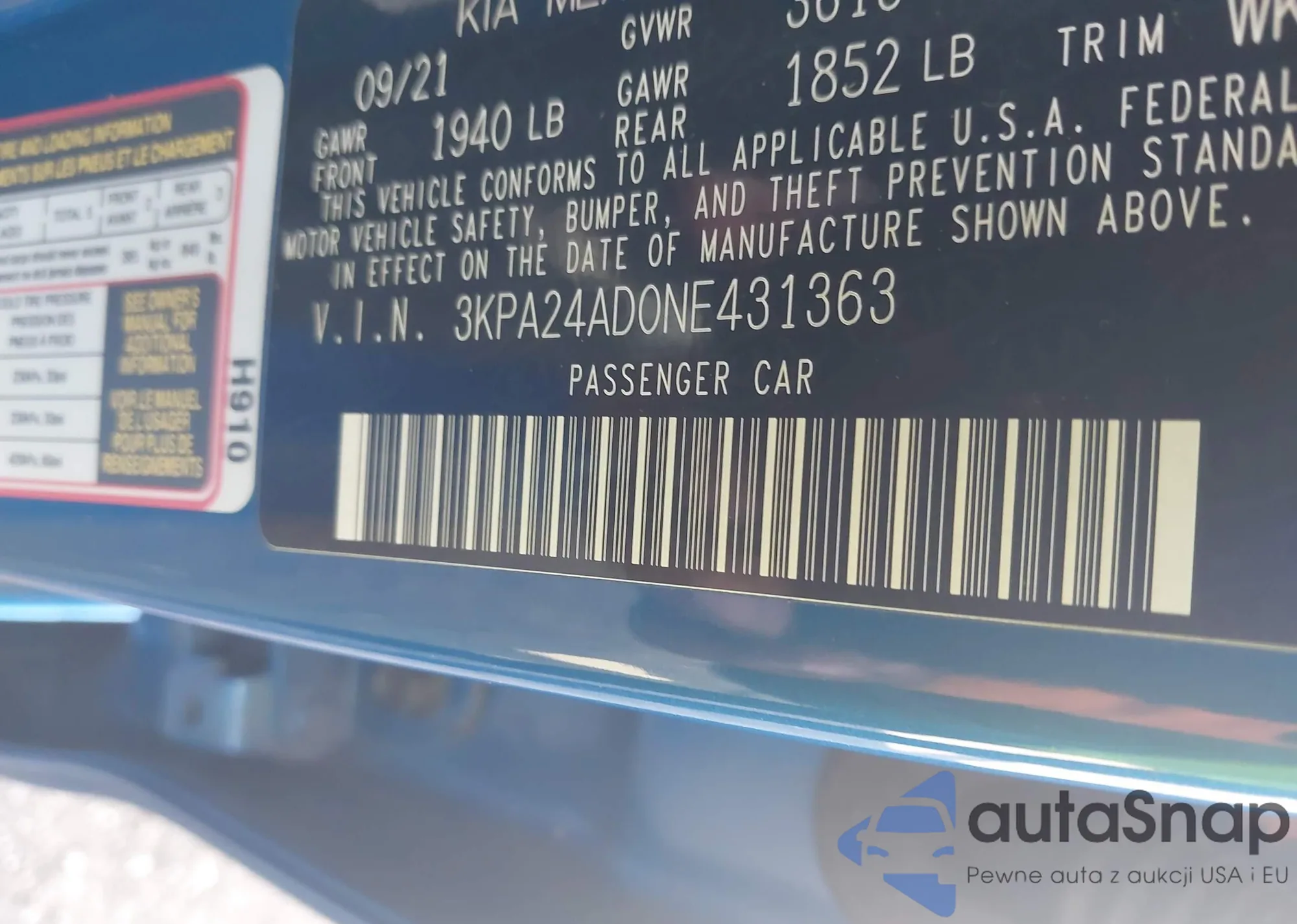 Samochód Kia Rio 2022 (VIN 3KPA24AD0NE431363) był już licytowany 1 razy i/lub sprzedaje go niezweryfikowany sprzedawca. Zalecamy raport Carfax i potwierdzenie możliwości rejestracji pojazdu przed zakupem.