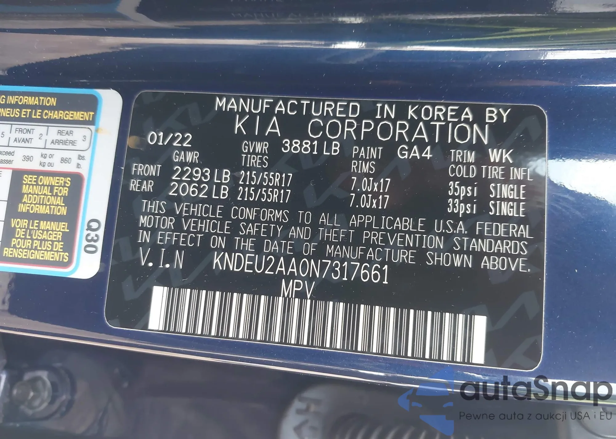 Samochód Kia Seltos 2022 (VIN KNDEU2AA0N7317661) ma dokumenty uniemożliwiające rejestrację. Mogą pojawić się trudności przy eksporcie i rejestracji. Skontaktuj się z ekspertami AutaSnap w celu znalezienia alternatywy.