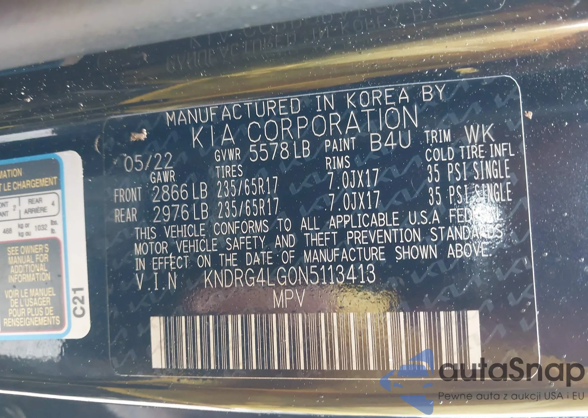 VIN: KNDRG4LG0N5113413