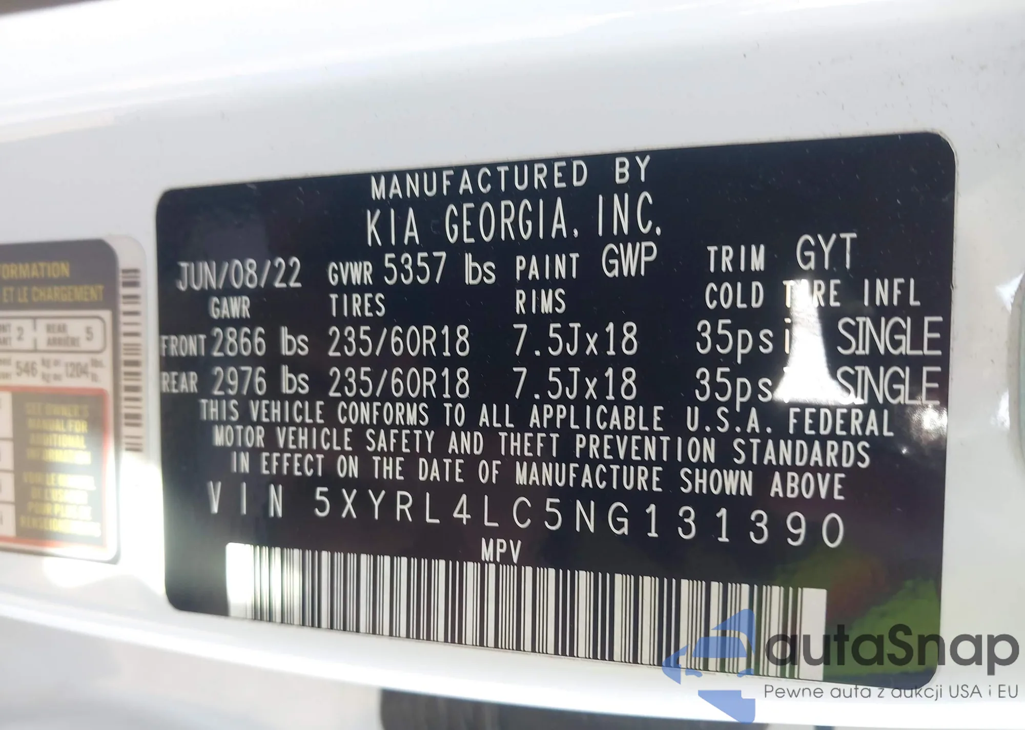 VIN: 5XYRL4LC5NG131390