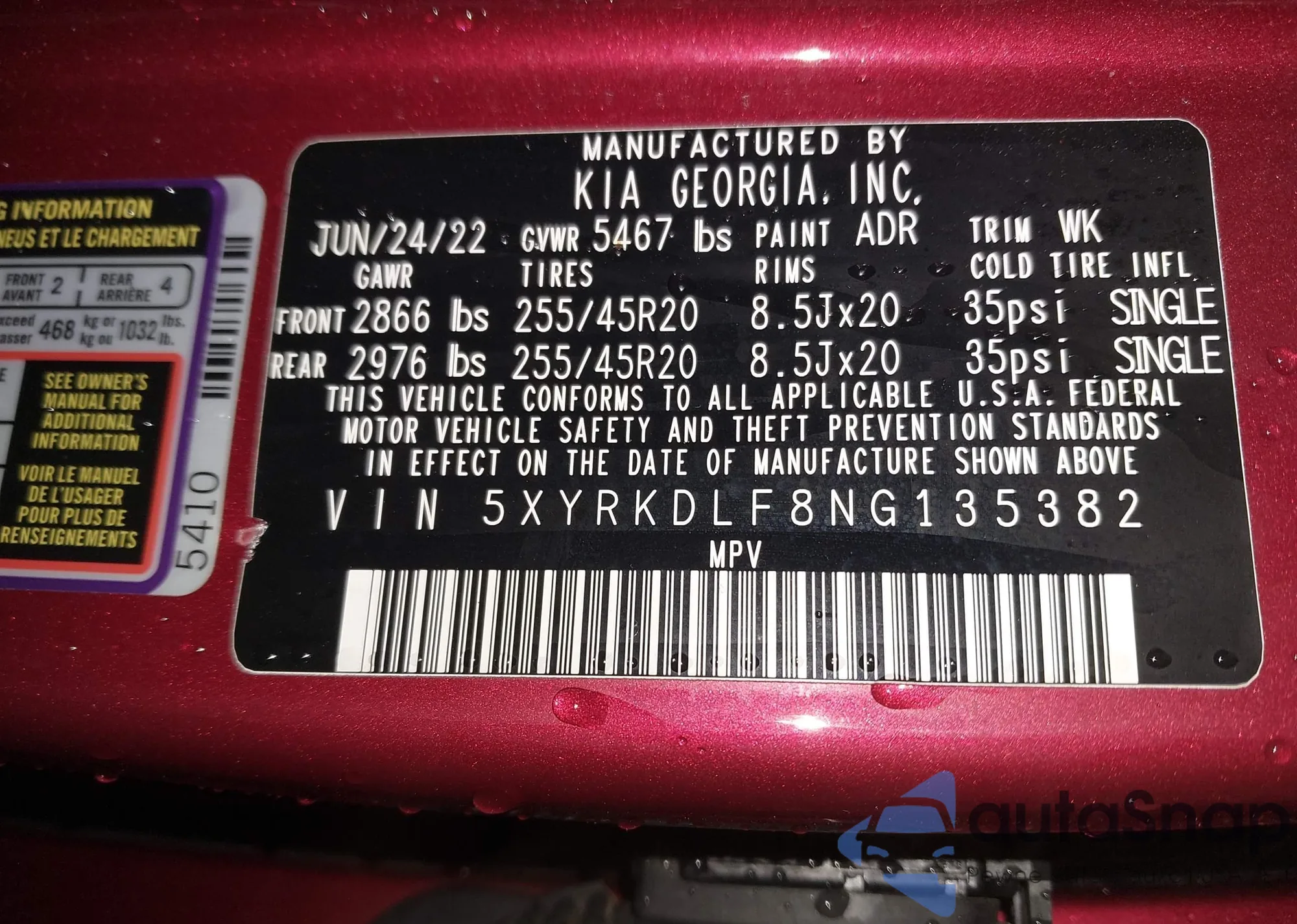 VIN: 5XYRKDLF8NG135382