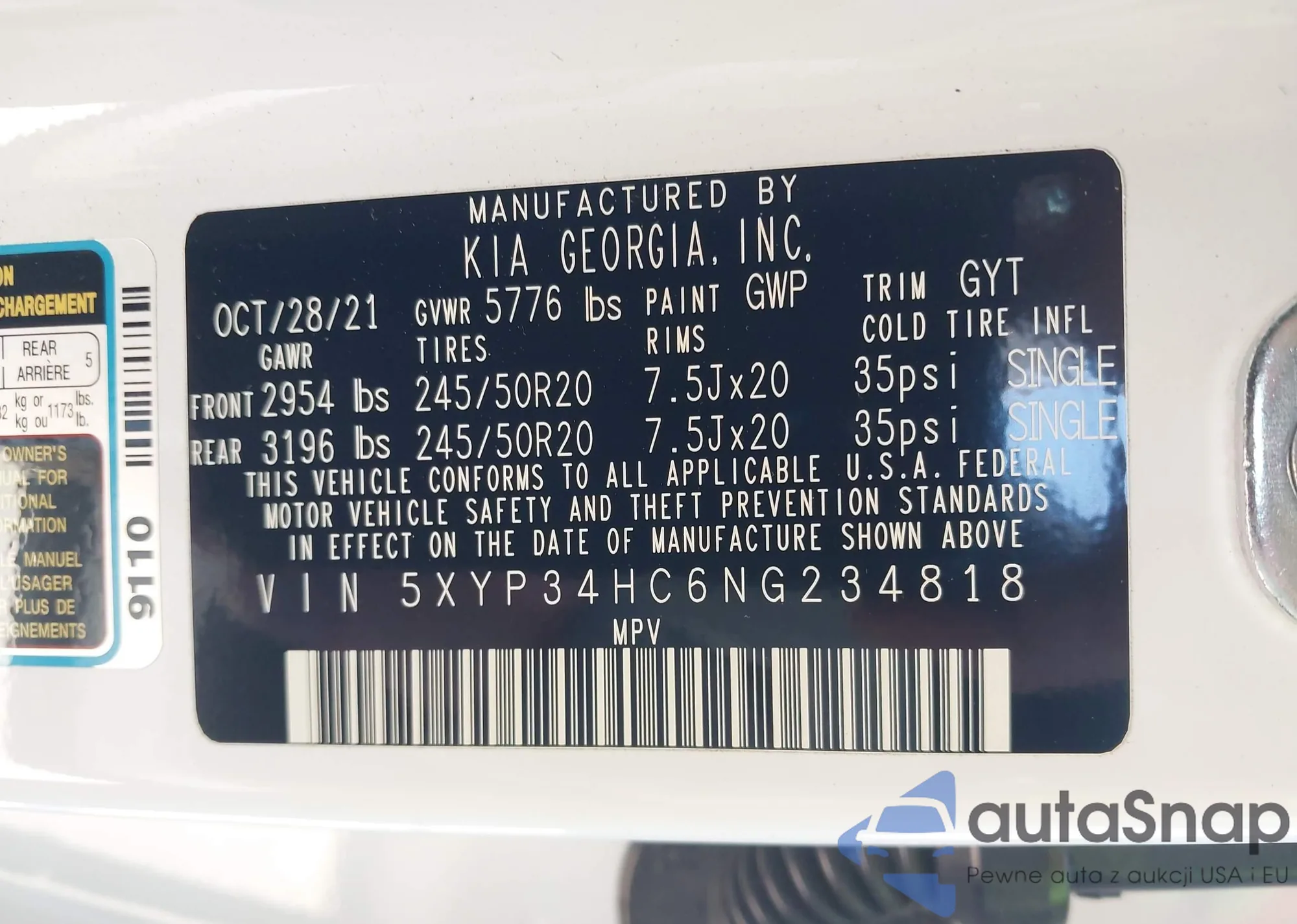 Samochód Kia Telluride 2022 (VIN 5XYP34HC6NG234818) ma dokumenty uniemożliwiające rejestrację. Mogą pojawić się trudności przy eksporcie i rejestracji. Skontaktuj się z ekspertami AutaSnap w celu znalezienia alternatywy.