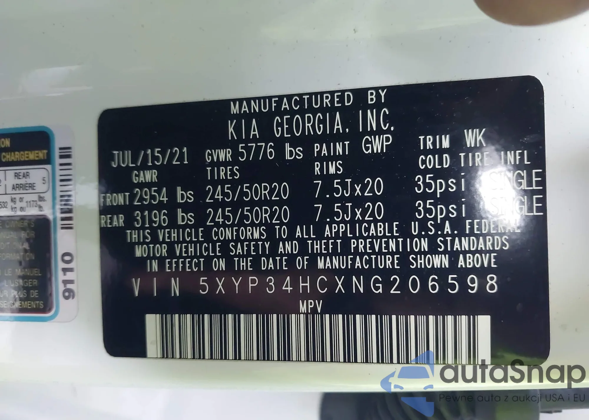 VIN: 5XYP34HCXNG206598