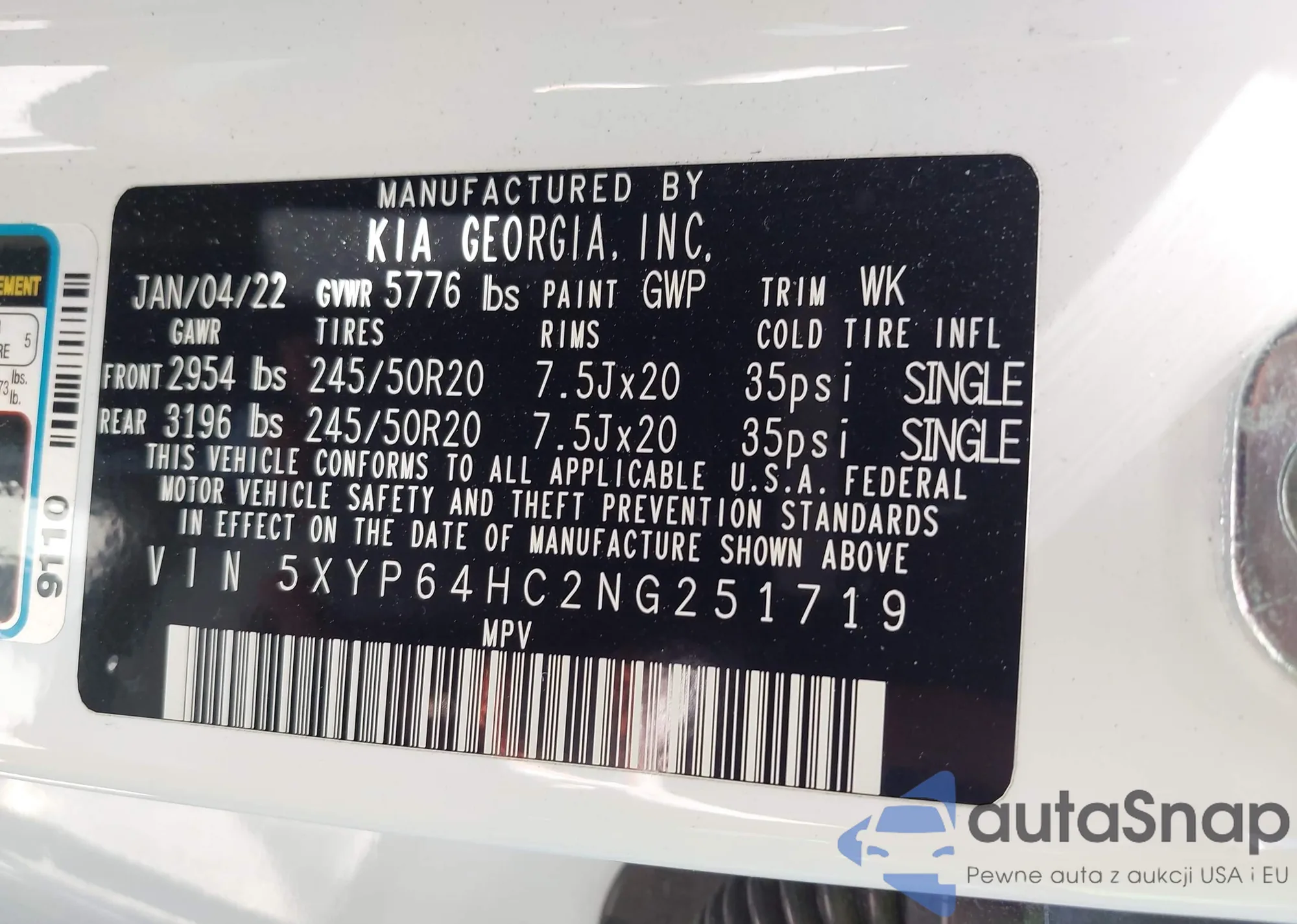 • VIN: 5XYP64HC2NG251719