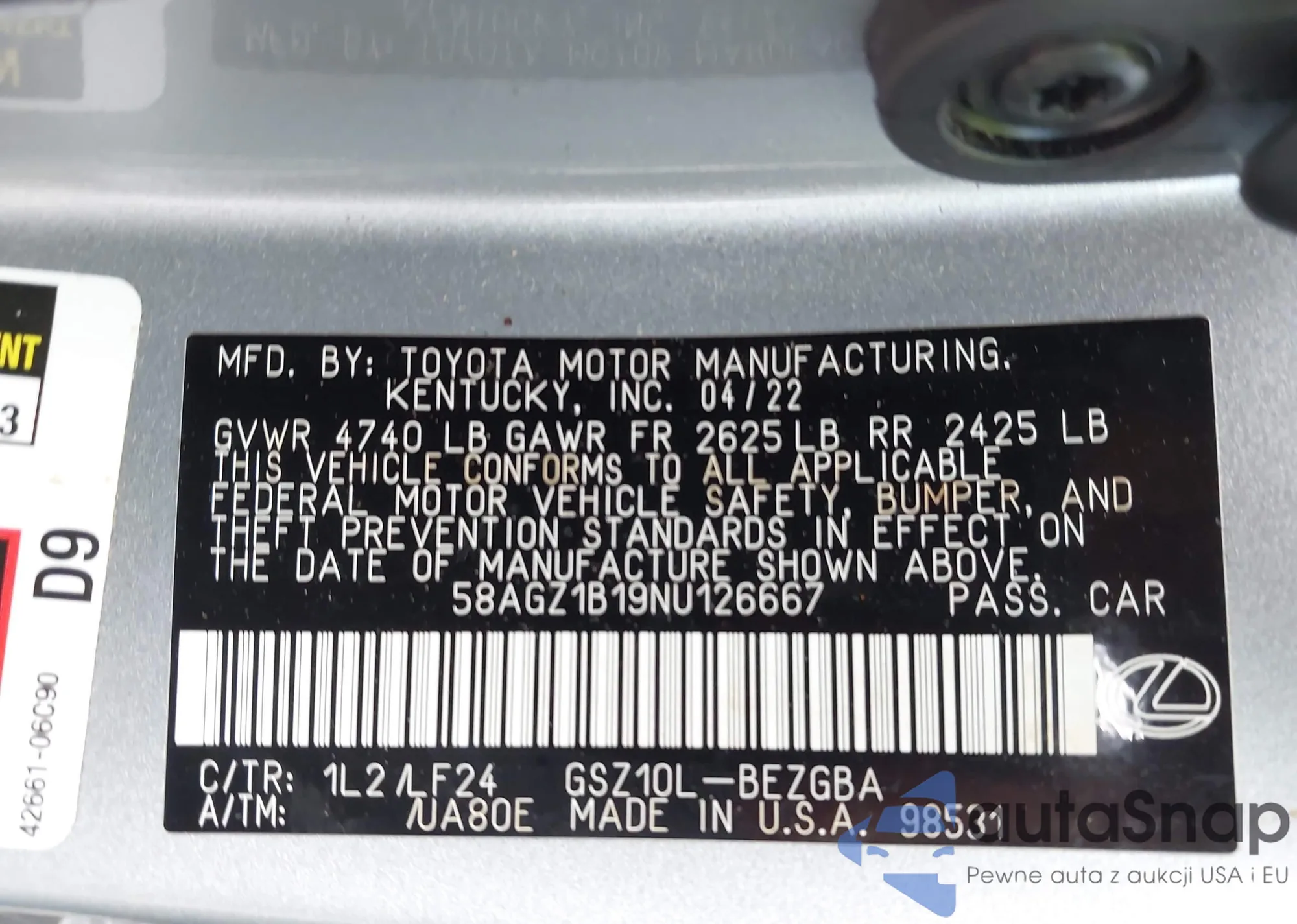VIN: 58AGZ1B19NU126667