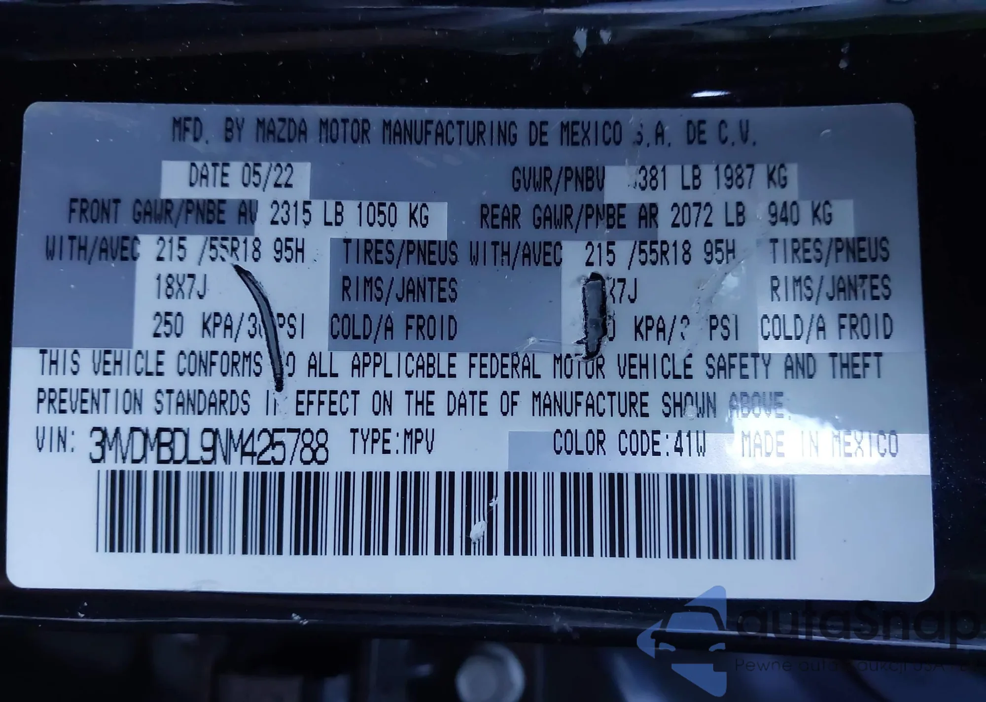 VIN: 3MVDMBDL9NM425788