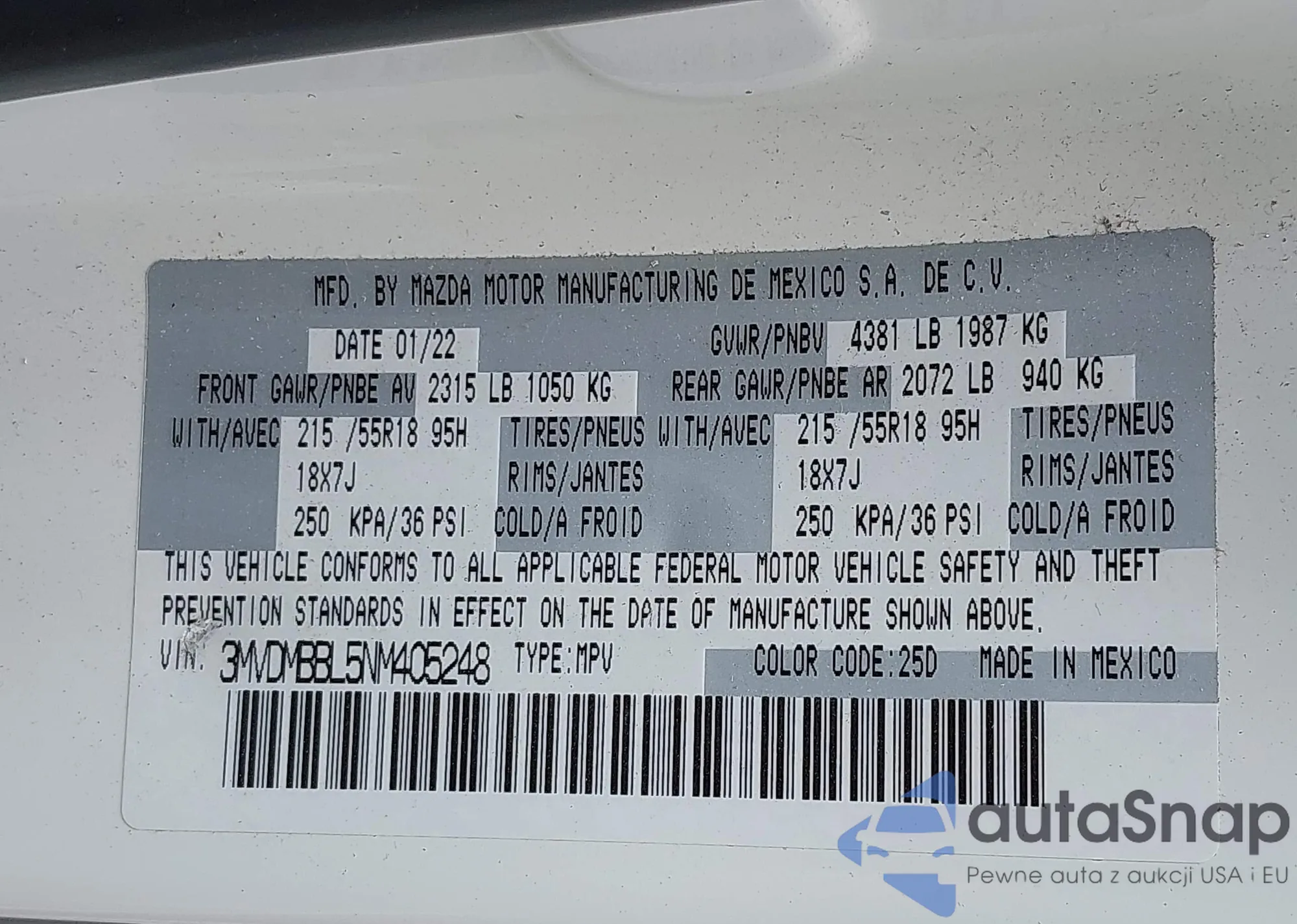 VIN: 3MVDMBBL5NM405248