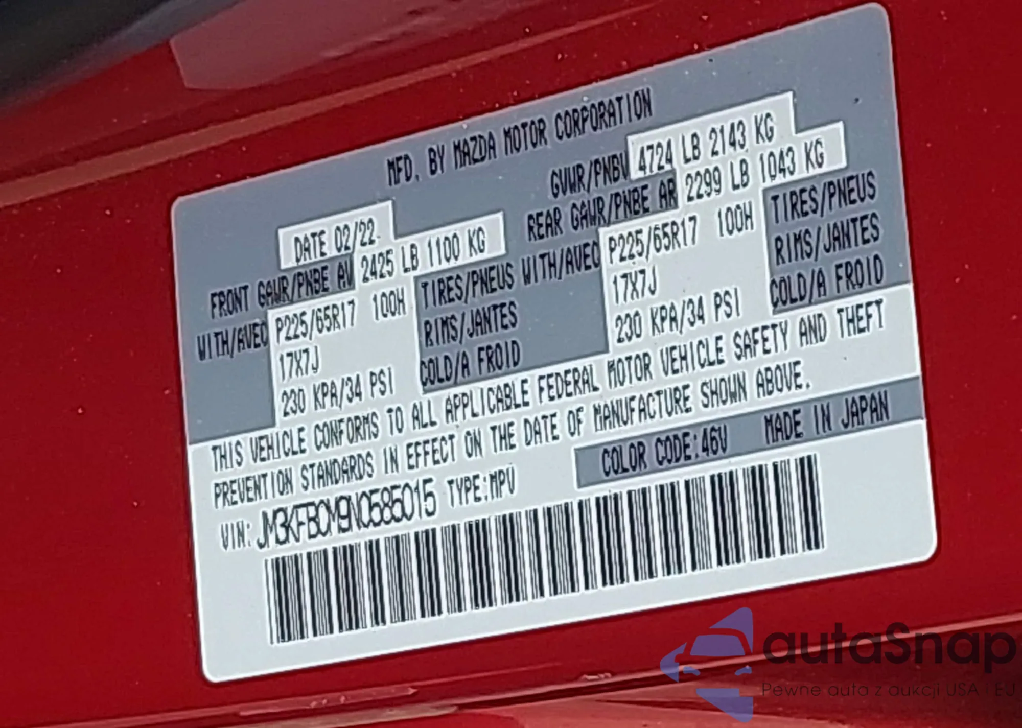 VIN: JM3KFBCM9N0585015