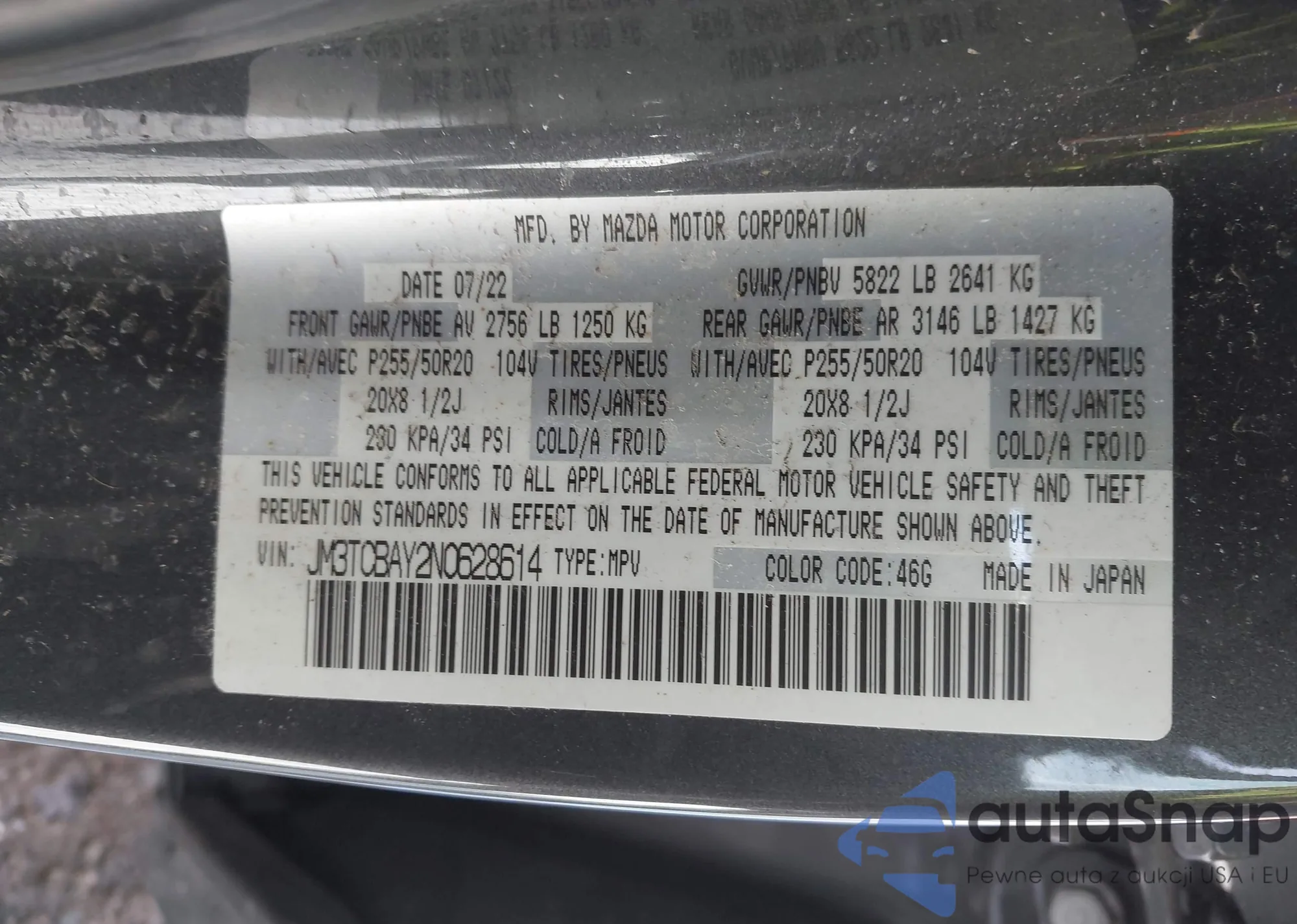• VIN: JM3TCBAY2N0628614