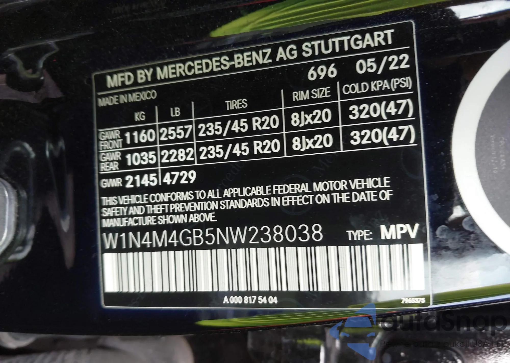 VIN: W1N4M4GB5NW238038