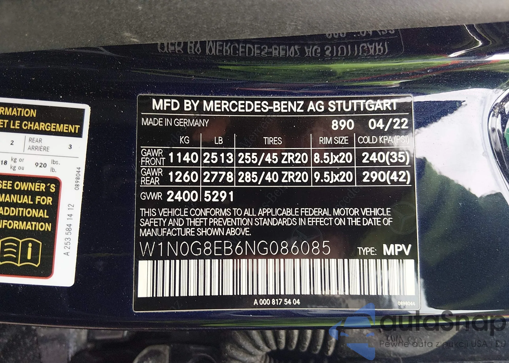 • VIN: W1N0G8EB6NG086085