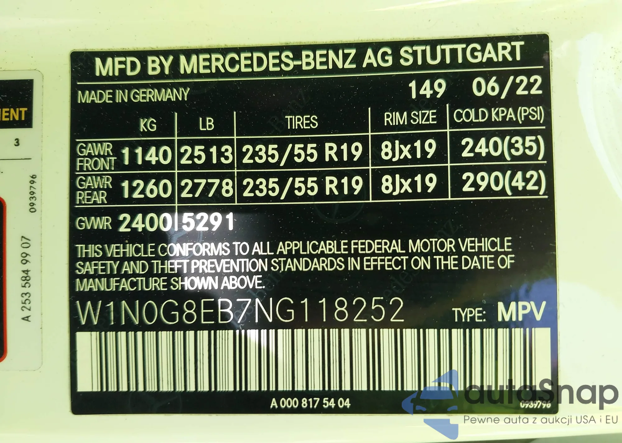 VIN: W1N0G8EB7NG118252