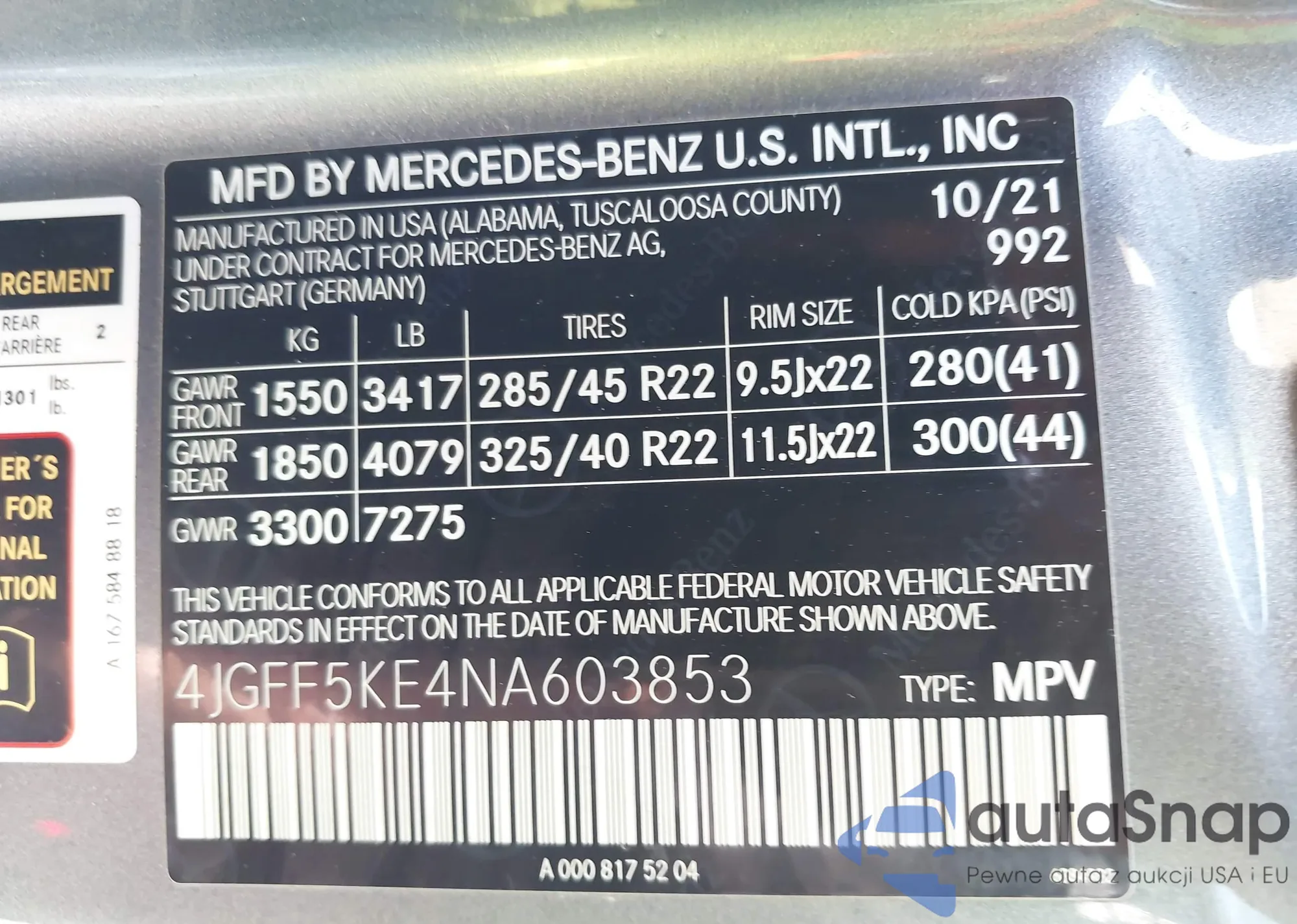 VIN: 4JGFF5KE4NA603853