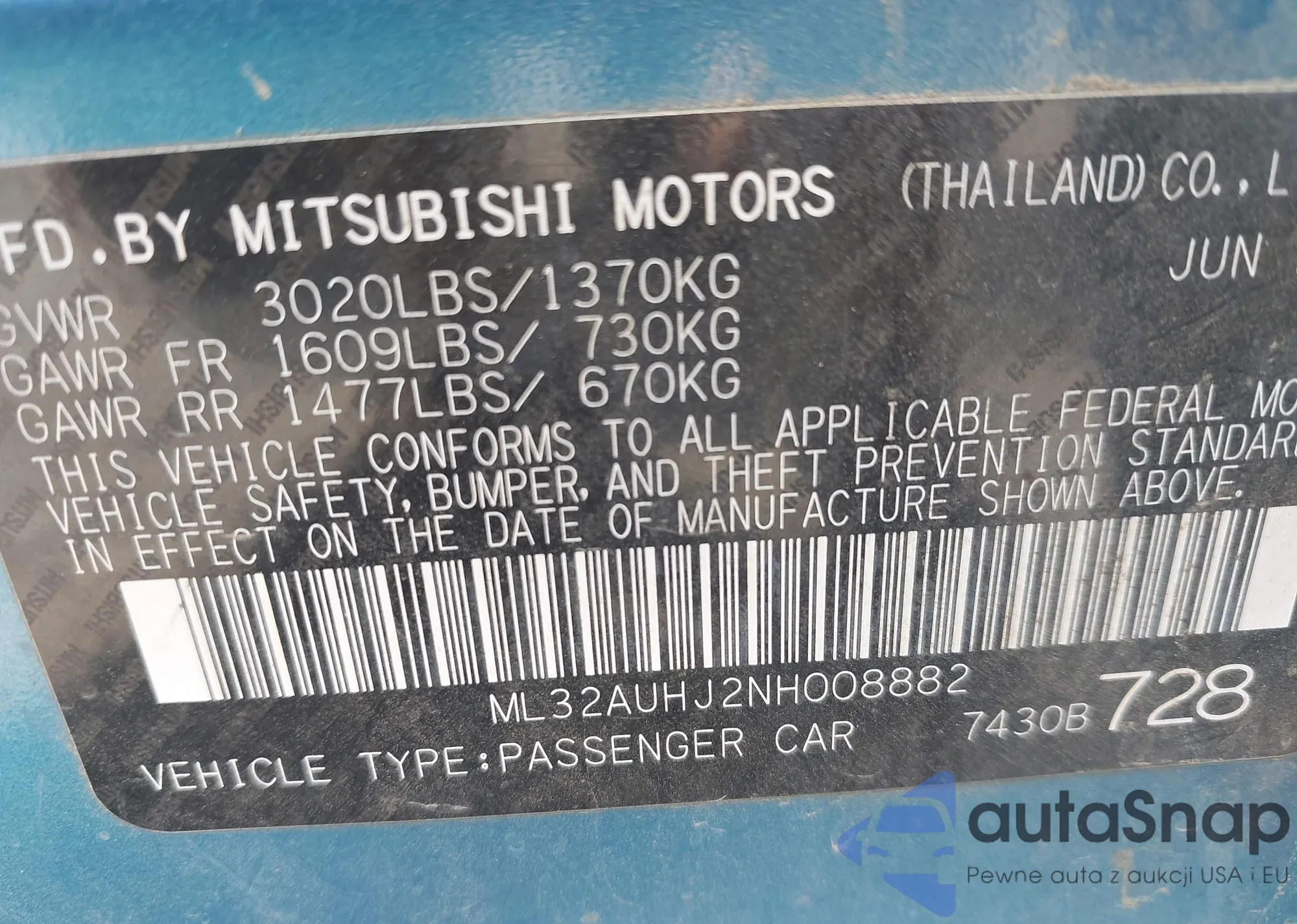 Samochód Mitsubishi Mirage 2022 (VIN ML32AUHJ2NH008882) ma dokumenty uniemożliwiające rejestrację. Mogą pojawić się trudności przy eksporcie i rejestracji. Skontaktuj się z ekspertami AutaSnap w celu znalezienia alternatywy.