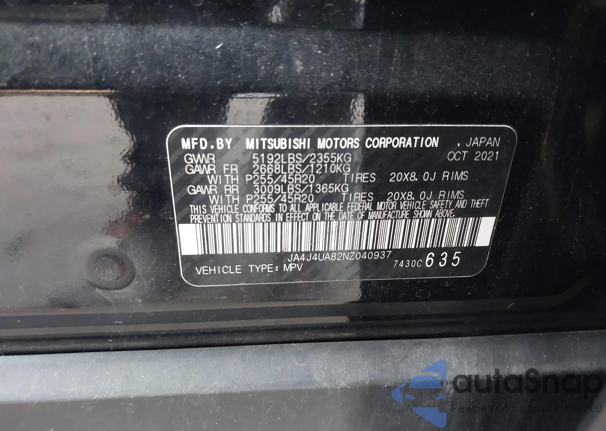 Samochód Mitsubishi Outlander 2022 (VIN JA4J4UA82NZ040937) nie był wcześniej licytowany. Dokumenty są czyste, przebieg odpowiada lub jest niższy niż średnia rynku. Sprzedaje go firma ubezpieczeniowa – polecamy zakup. Dostawa do portu zajmie ok. 6–8 tygodni.